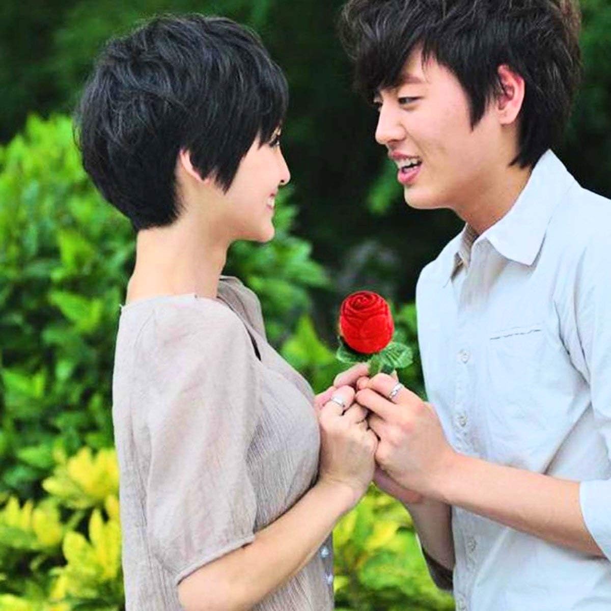 Yellow Chimes crystal Base Metal Engagement Proposal Ring with Velvet Red Rose Ring Box for Women and Girls