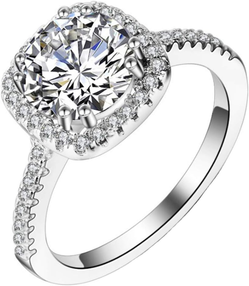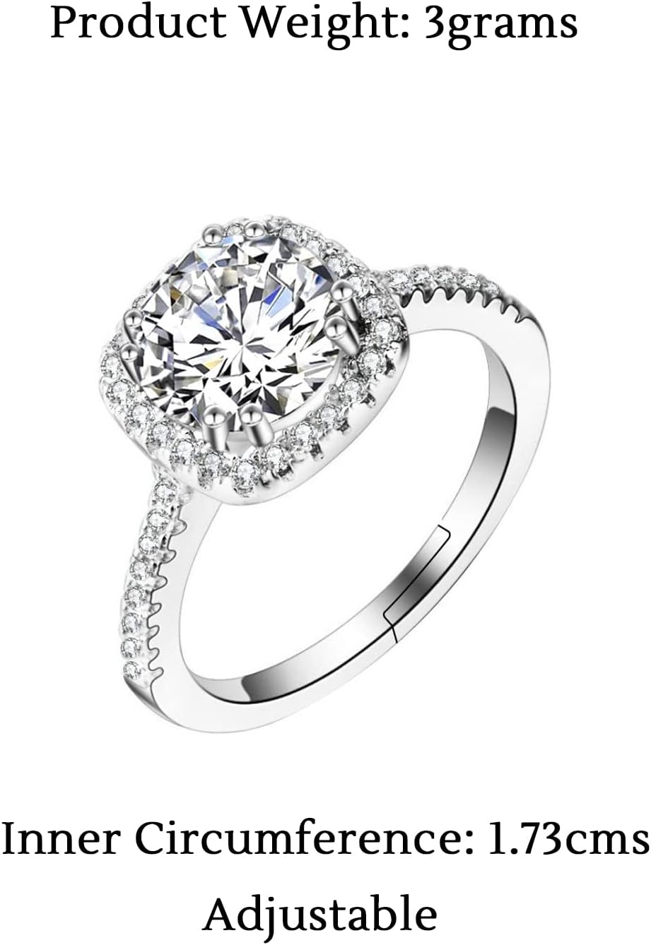 Yellow Chimes Elegant A5 Grade Sparkling Crystal Square Shaped Silver Plated Classic Rings for Women and Girl's