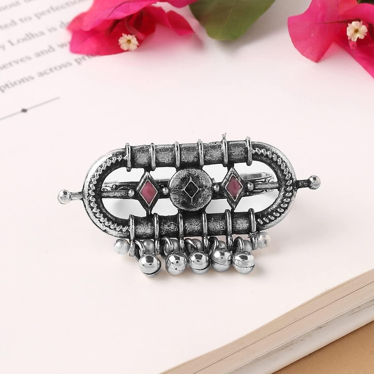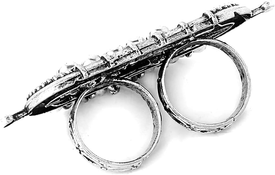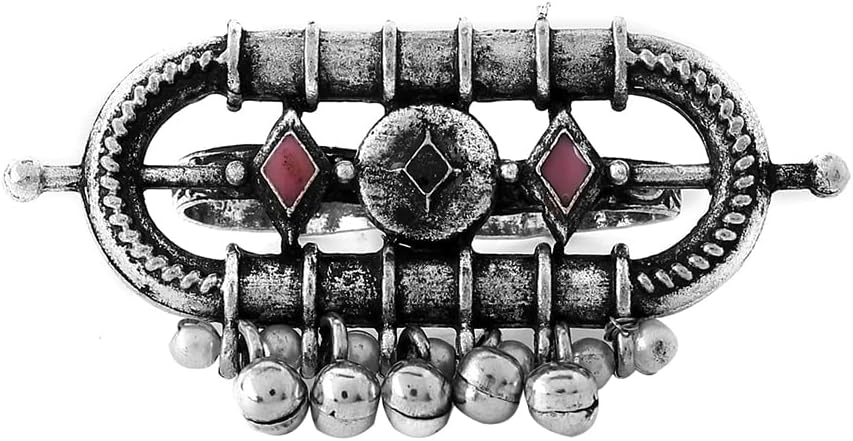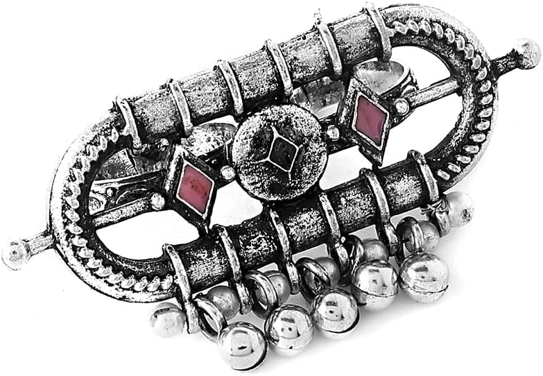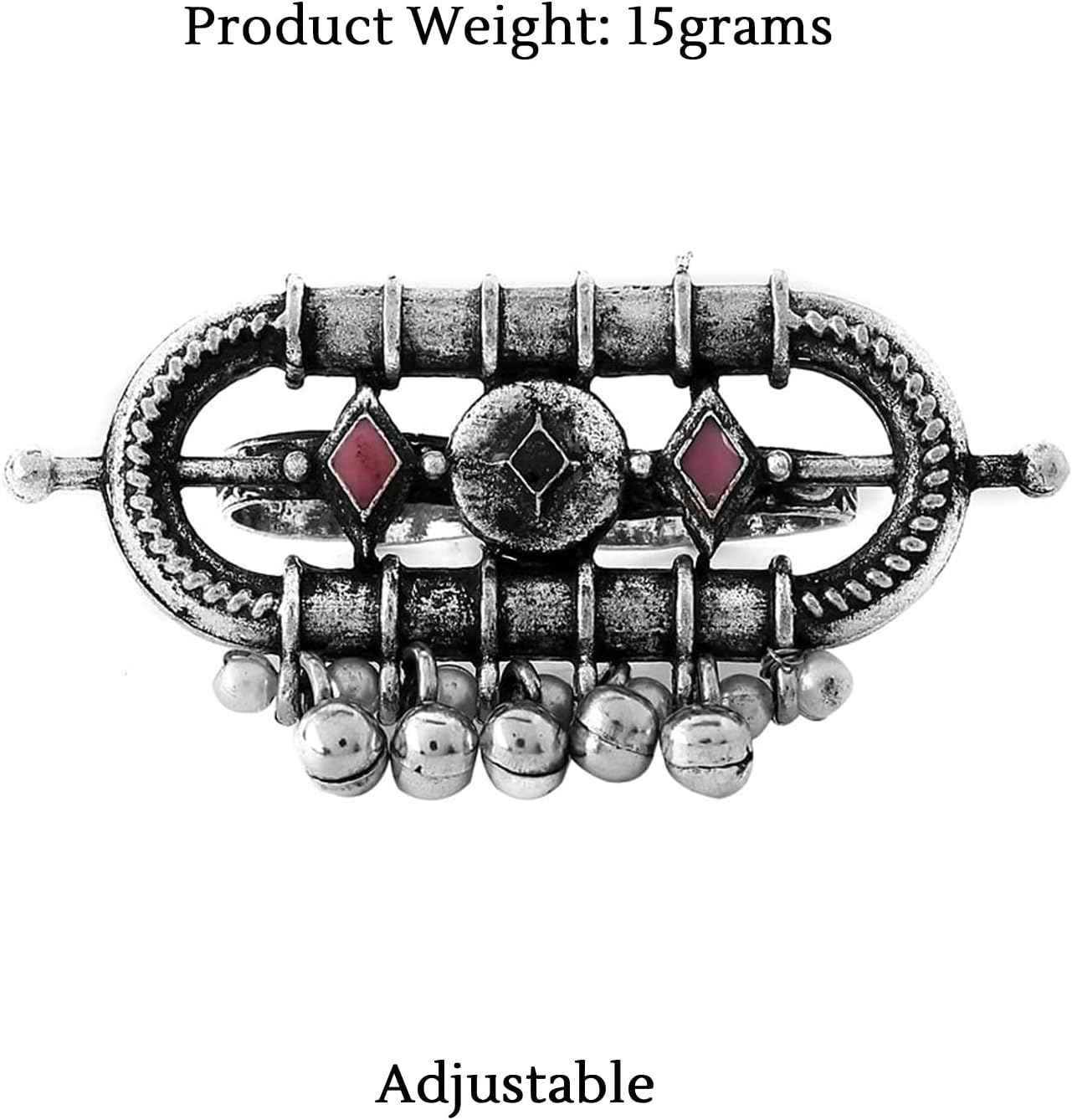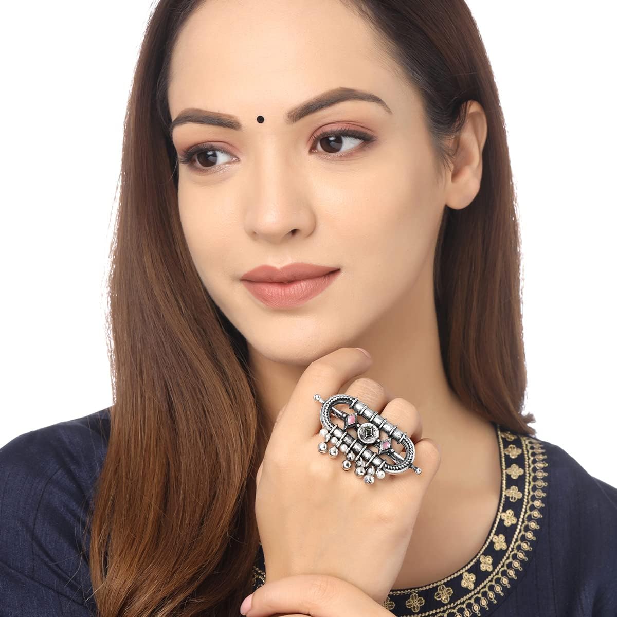 Yellow Chimes Rings For Women Afgahni Silver Oxidised Stone Studded Ghungroo Beaded Round Antique Finger Ring For Women and Girls