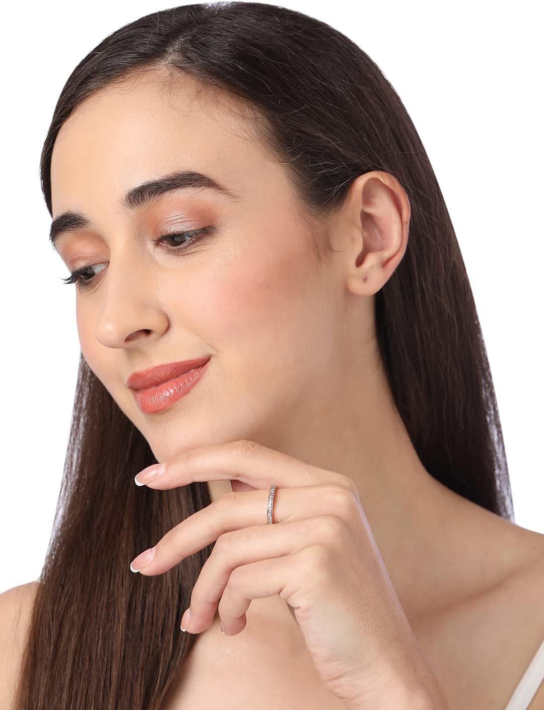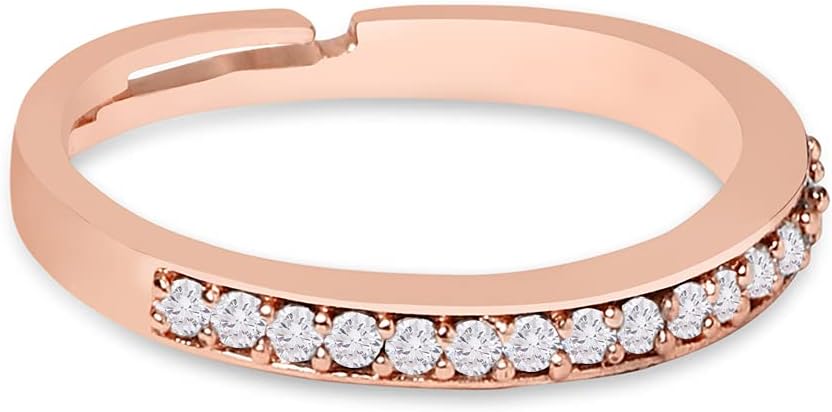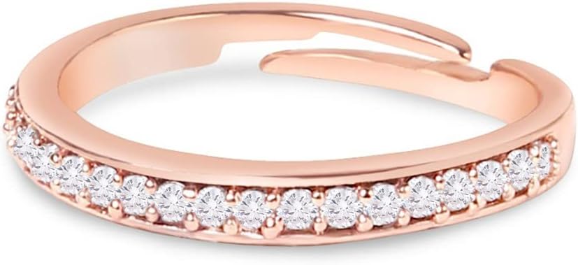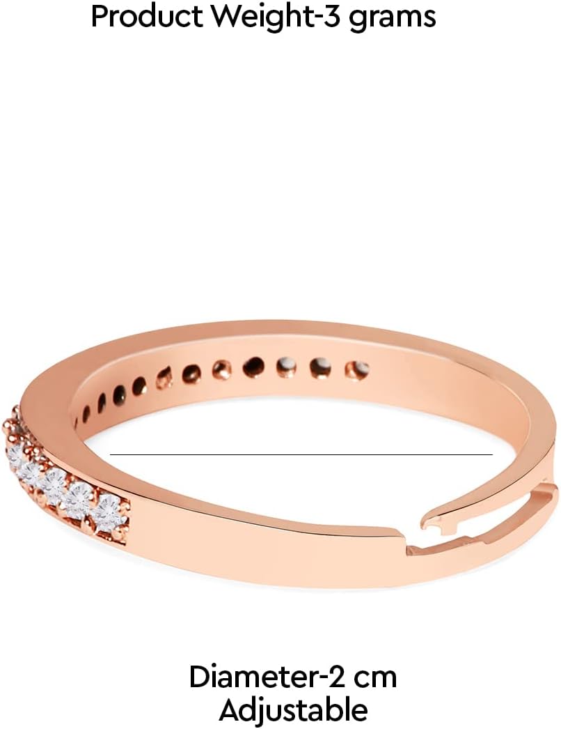 Zaveri Pearls Rose Gold Cubic Zirconia Contemporary Brass Sleek Adjustable Ring For Women-ZPFK10902