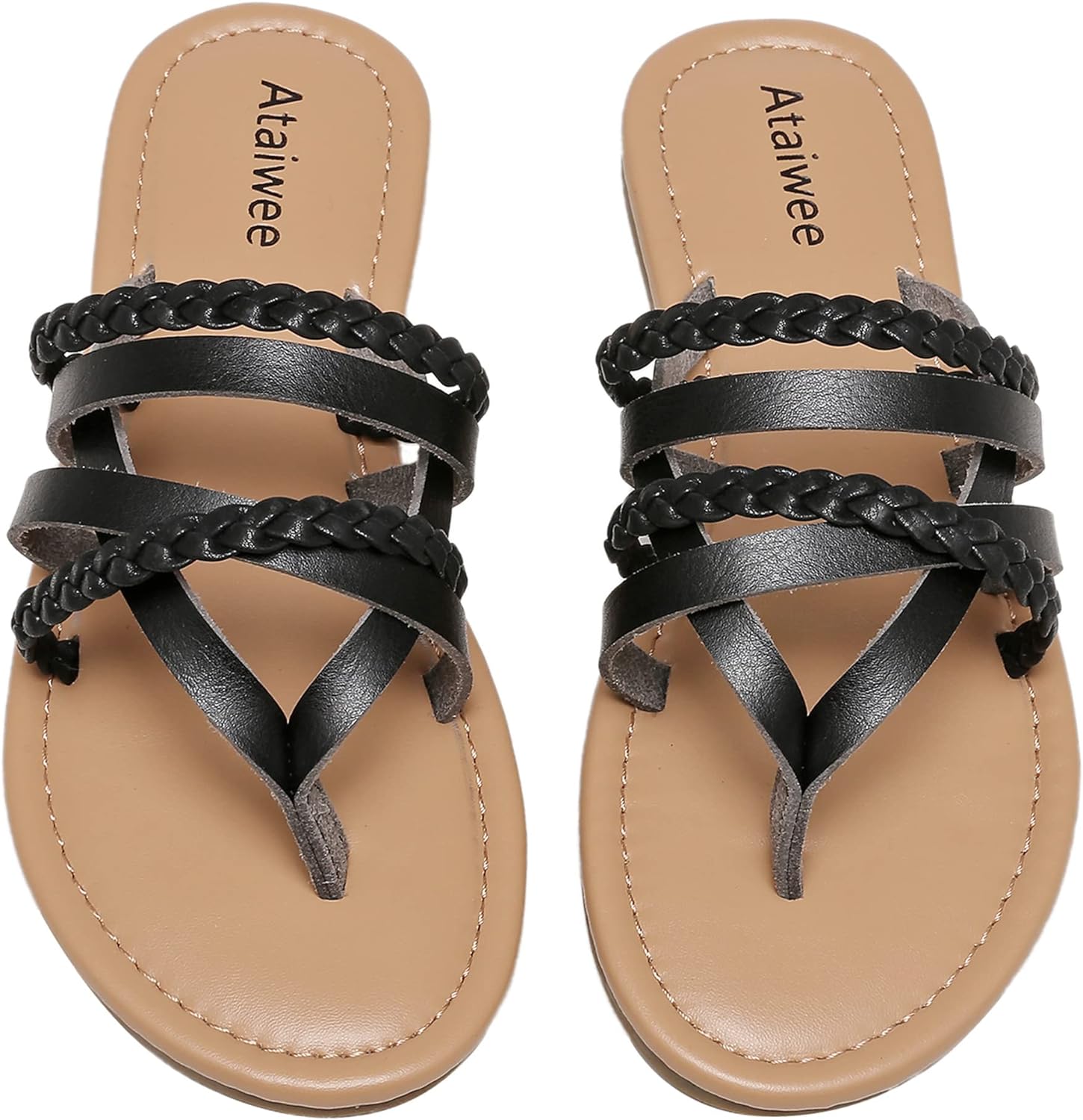 Ataiwee Women's Slide Flat Sandals - Comfortable Slip On Thong Strappy Spring Summer Shoes.