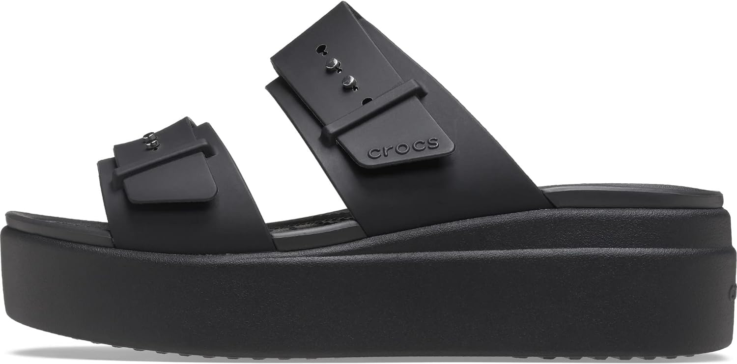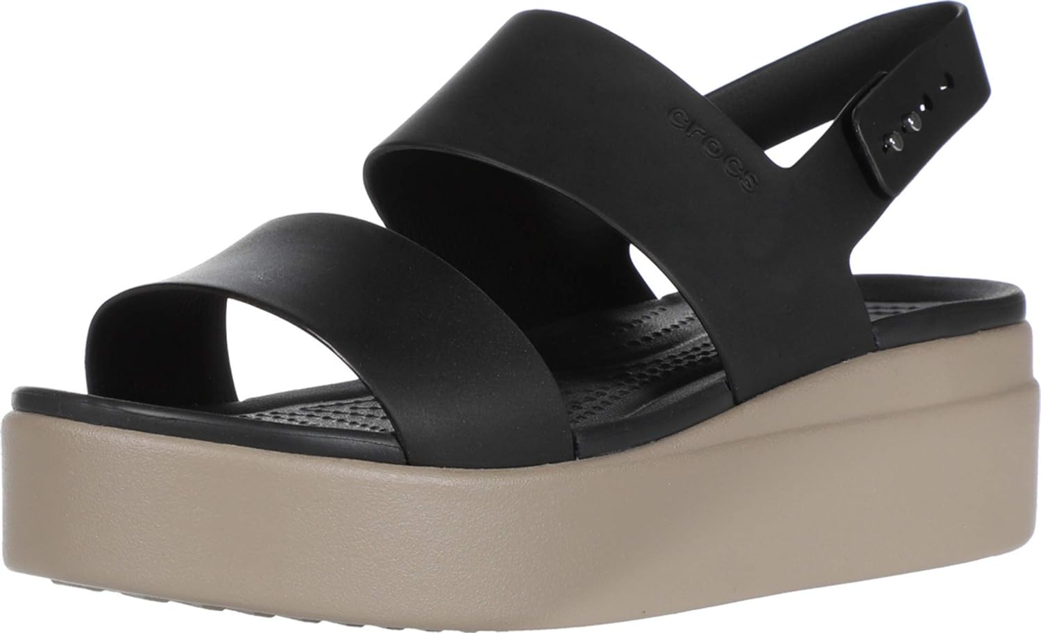 By Crocs, Brooklyn Low Wedge womens sandals in cream. Brooklyn Low Wedge gives height and comfort. Supersoft footbed gives support all day long
