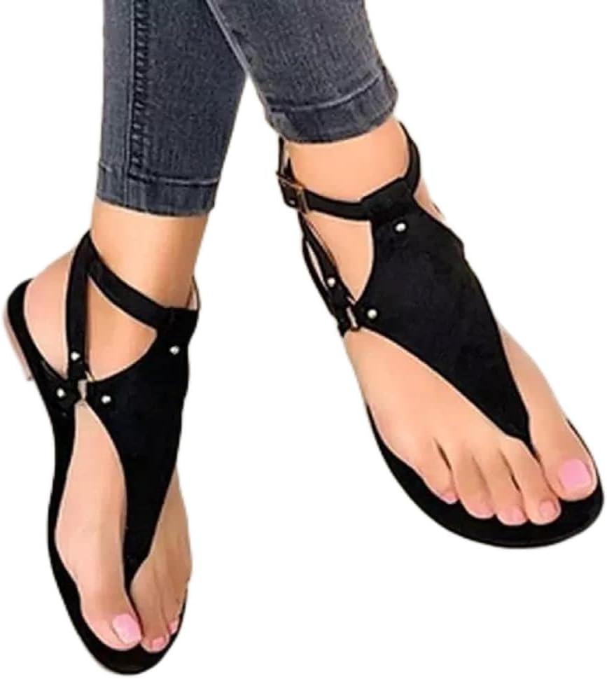 WEDFGX Women Sandals Summer Outdoor Beach Flip-Flop Sandals Solid Fashion Gladiator Sandals Women Flats Casual Ladies Shoes, Black