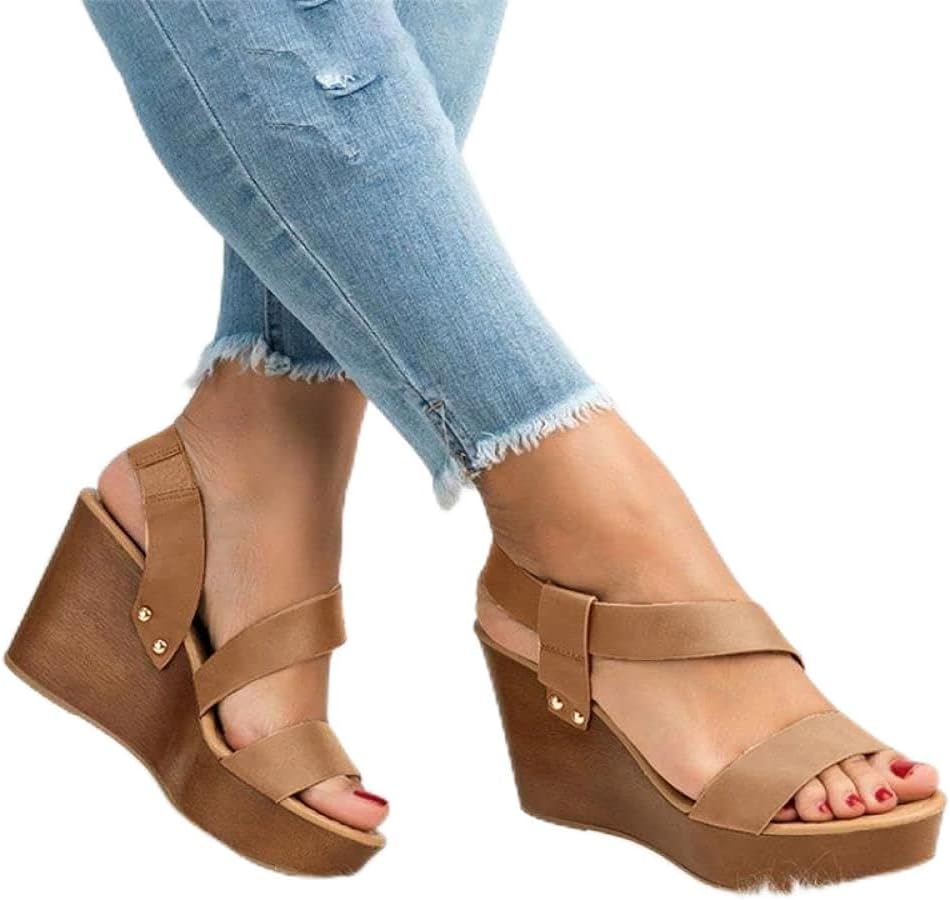 WEDFGX Women Sandals Wedge Platform Sandals Summer Slip On Ladies High Heels Shoes Fashion Open Toe Casual Female Footwear