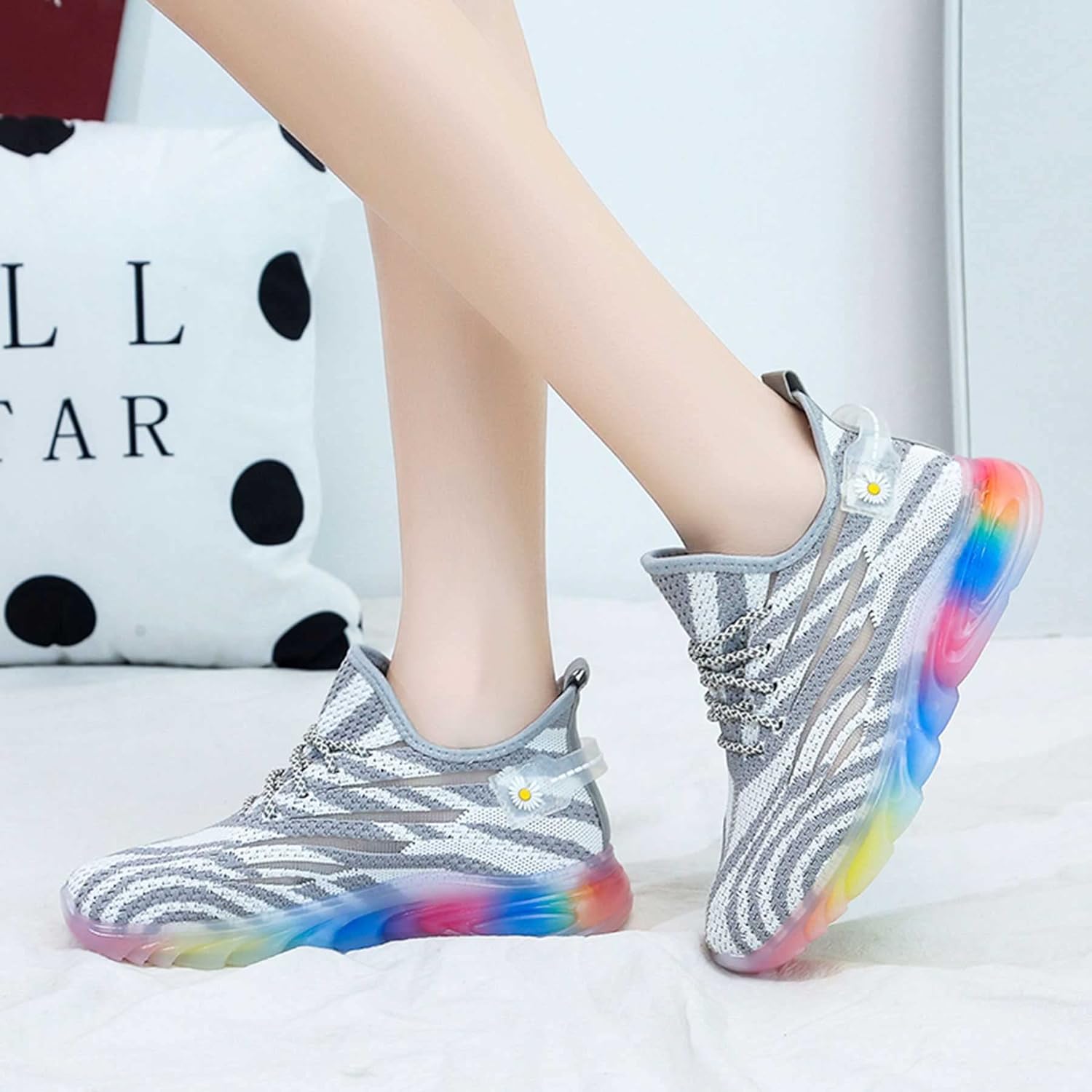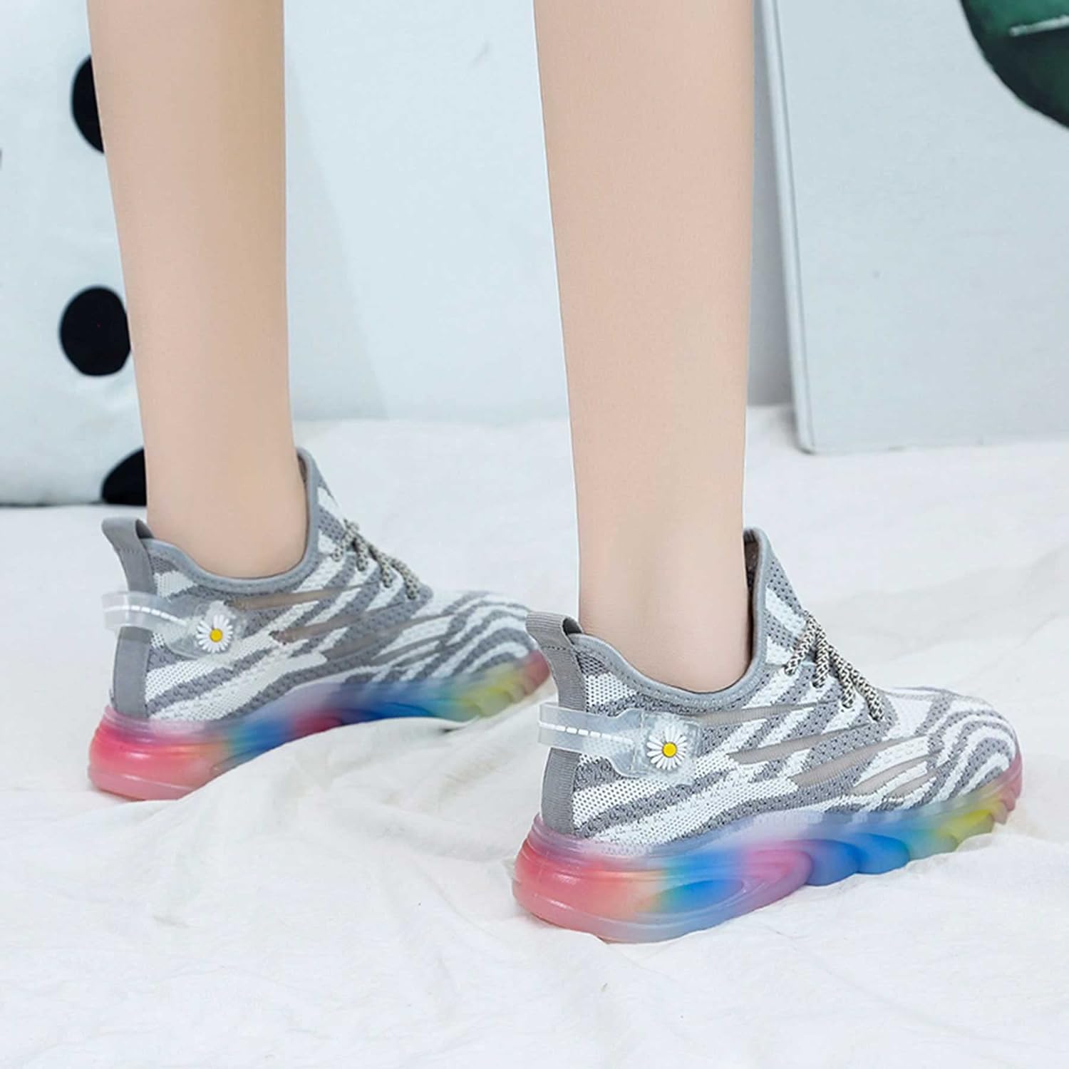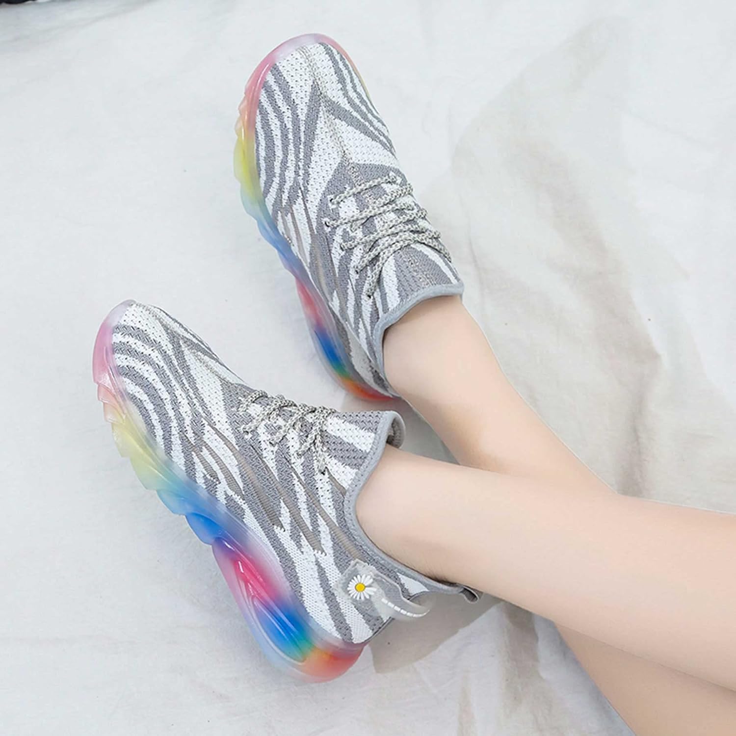 - Rubber Sole: The sole is made of rubber, which adds anti-slip texture, and the anti-slip and wear-resistant performance is remarkable, providing longer durability and grip; the color effect design makes your every step shine with iridescent light
