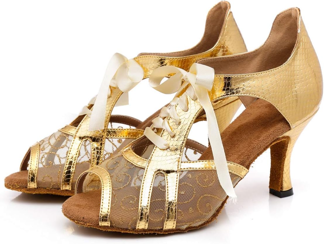 Hanfike wedding sandals for women featuring ribbon lace tie to closure with mesh & pu leather material sewing upper. It is rubber sole for outdoor and leatherette lining, Cushion insole. Extremely flexible, lightweight, non-slip, comfortable and durable. Elegant heeled shoes for your wedding, evening & party.