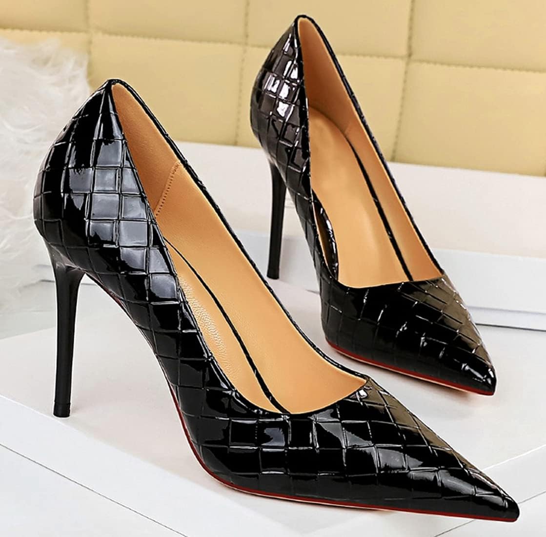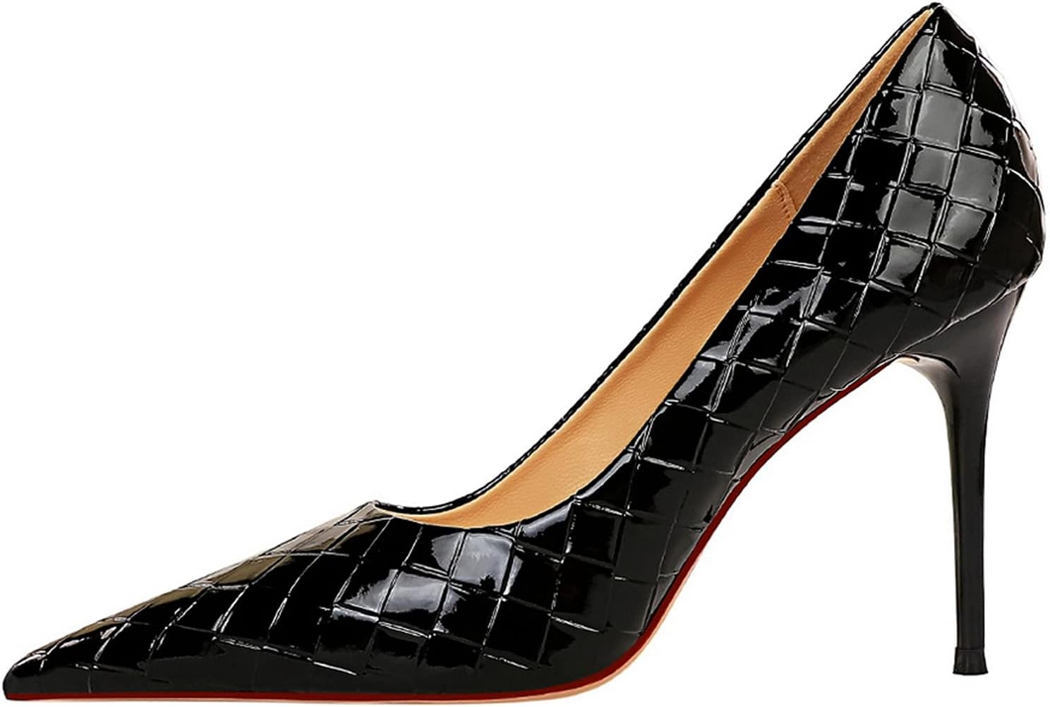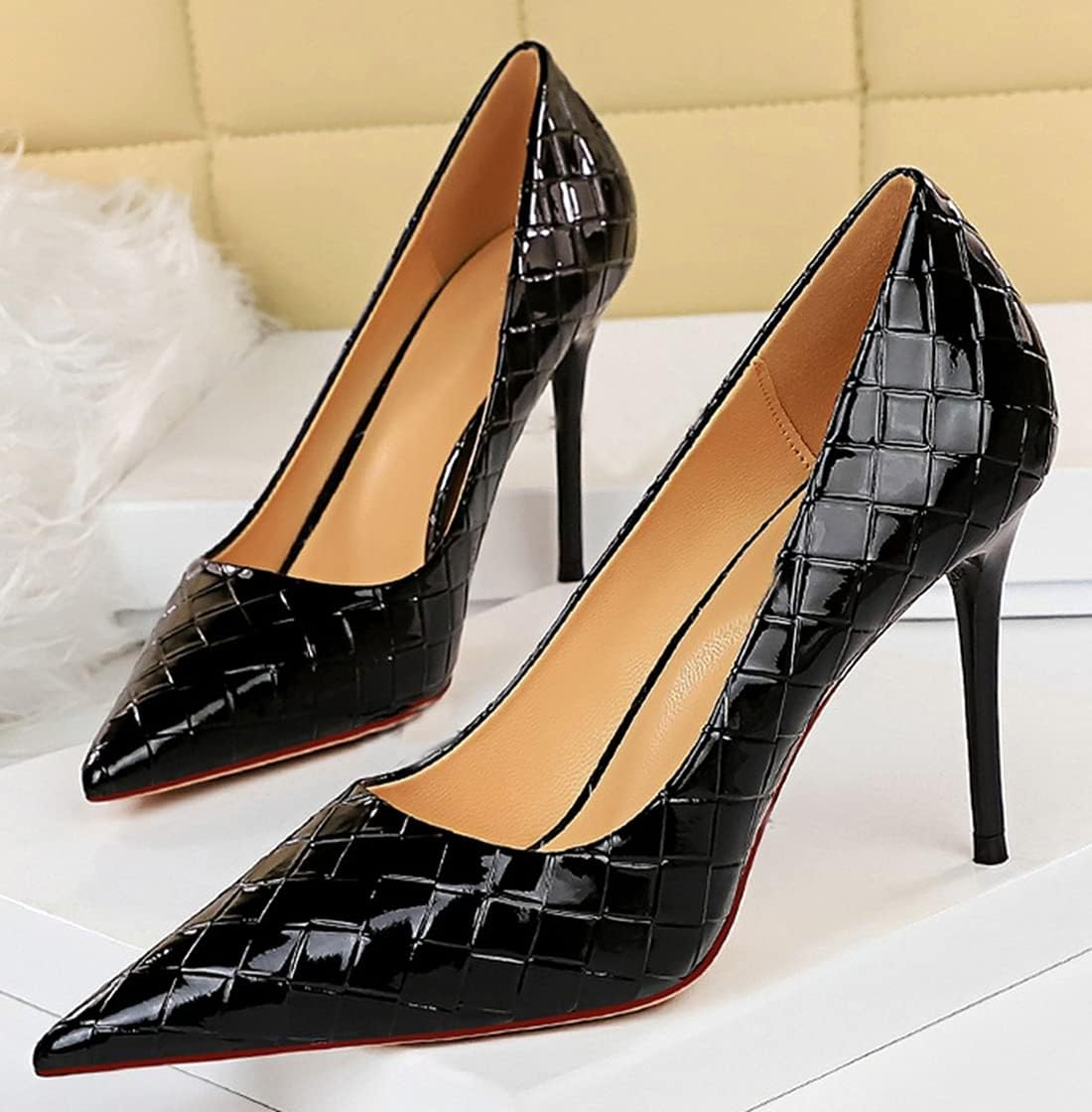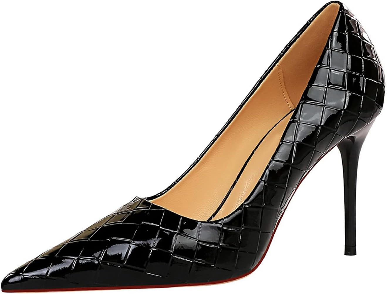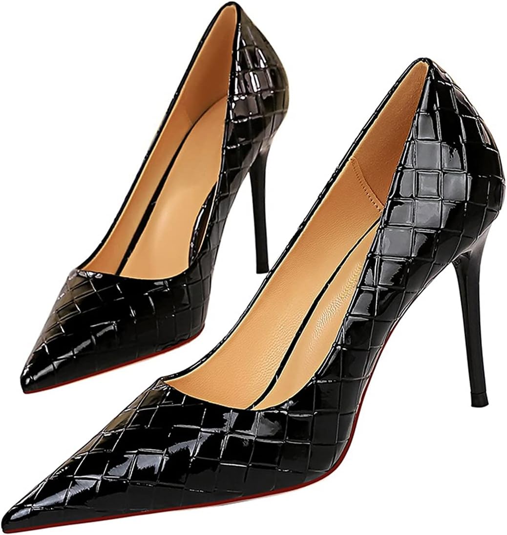Hanfike Womens Shoes Dress Heels Woven Pattern Slim Wedding Party Pumps DS1932-1, Black, 6