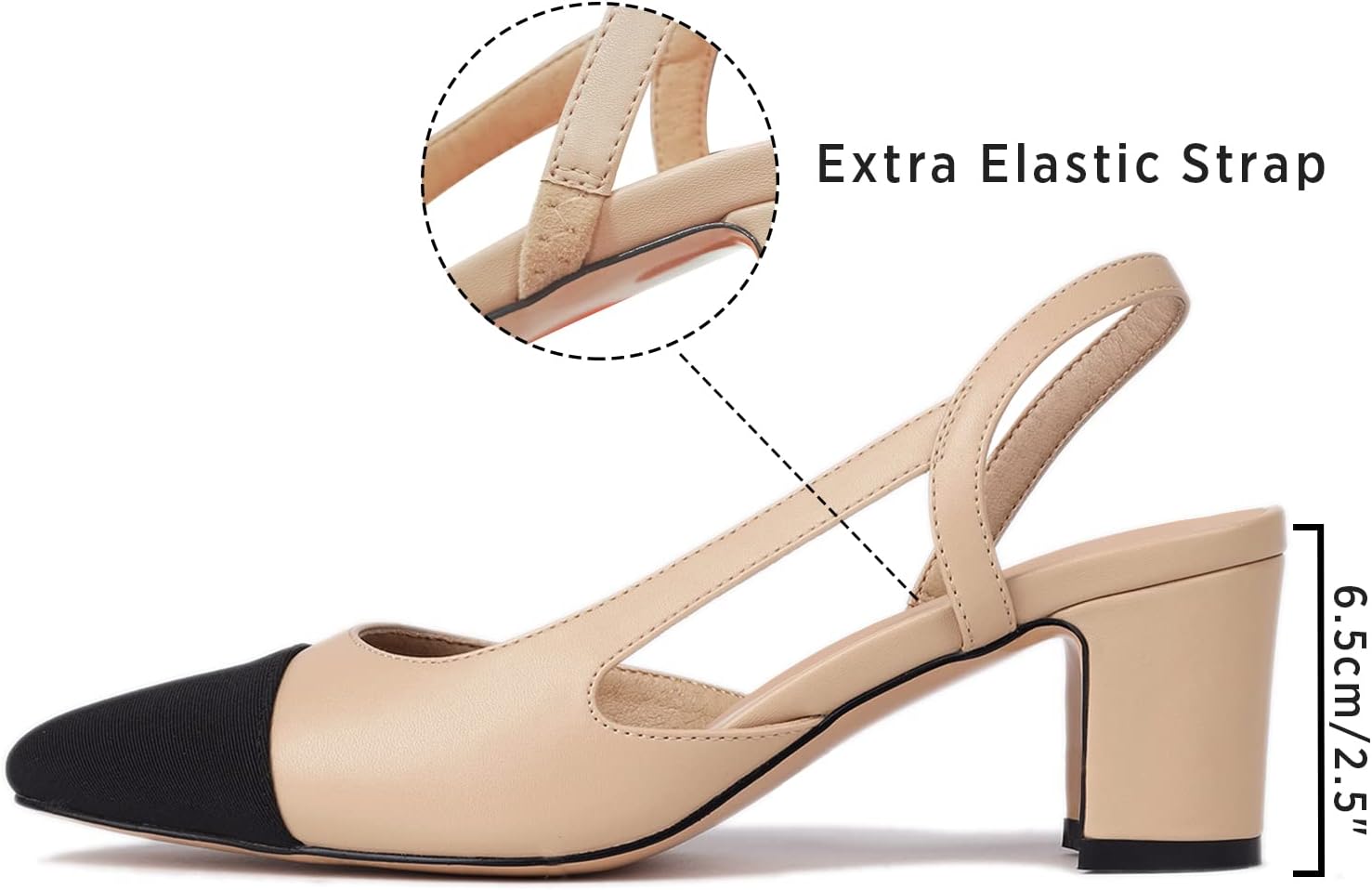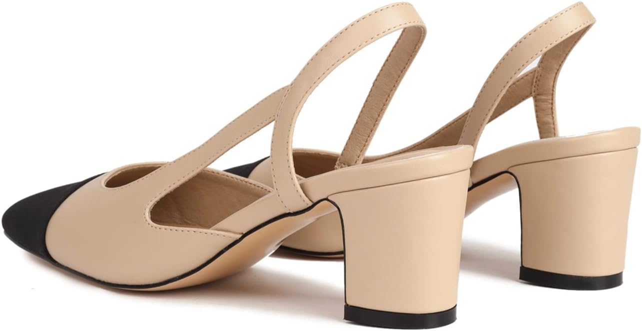 - Unique Patchwork Design: Our slingback heels for women feature a bold and stylish patchwork design, with contrasting colors and textures.