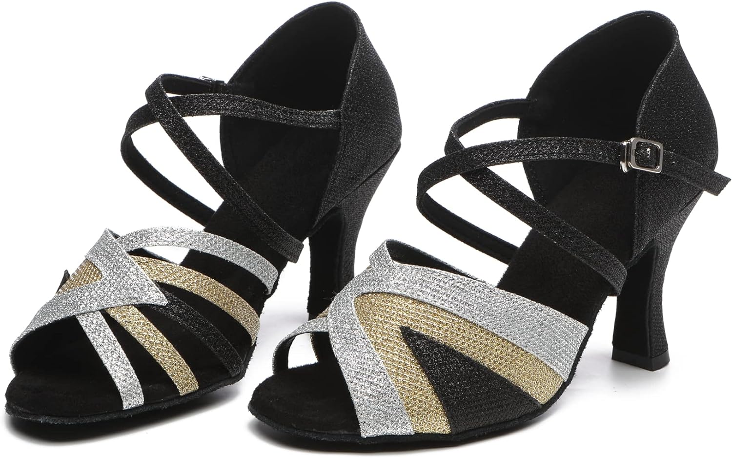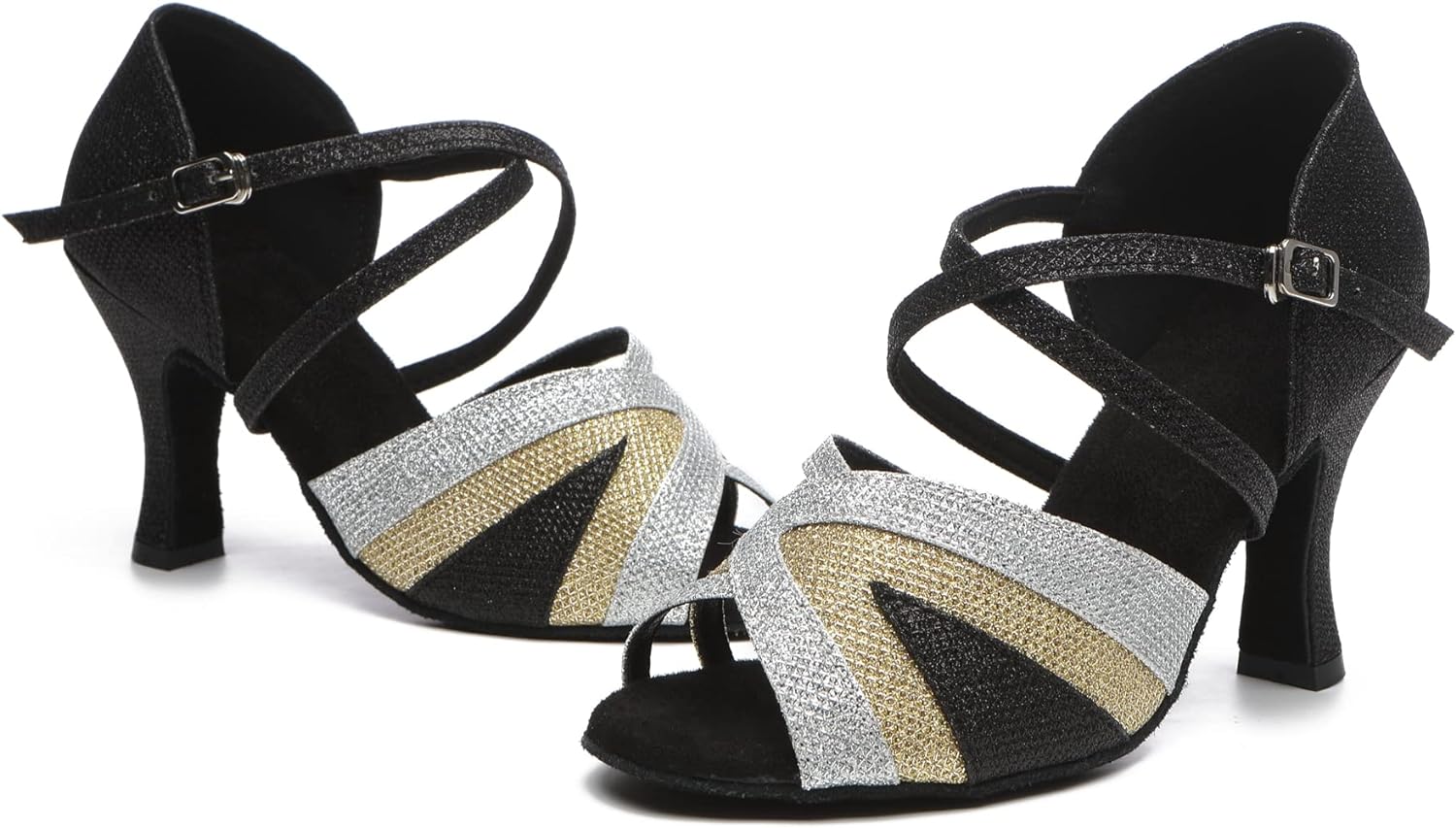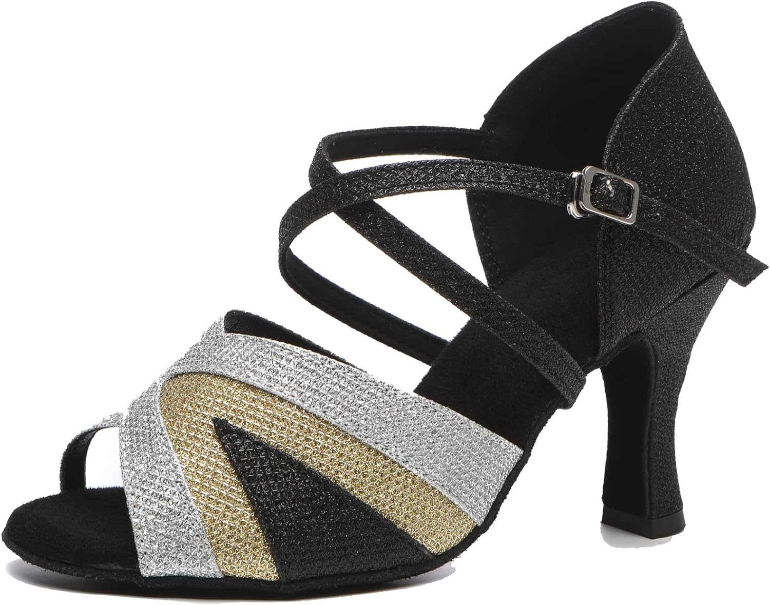 MINITOO womens dance sandals is gliiter material upper with cross strap. They has peep toe with adjustable heel height. It is snap buckle to closure. This fashion dance shoes is the best gift for your girlfriend and dance partner. and it is the best choice for the bridal and bridesmaid on wedding occasions.