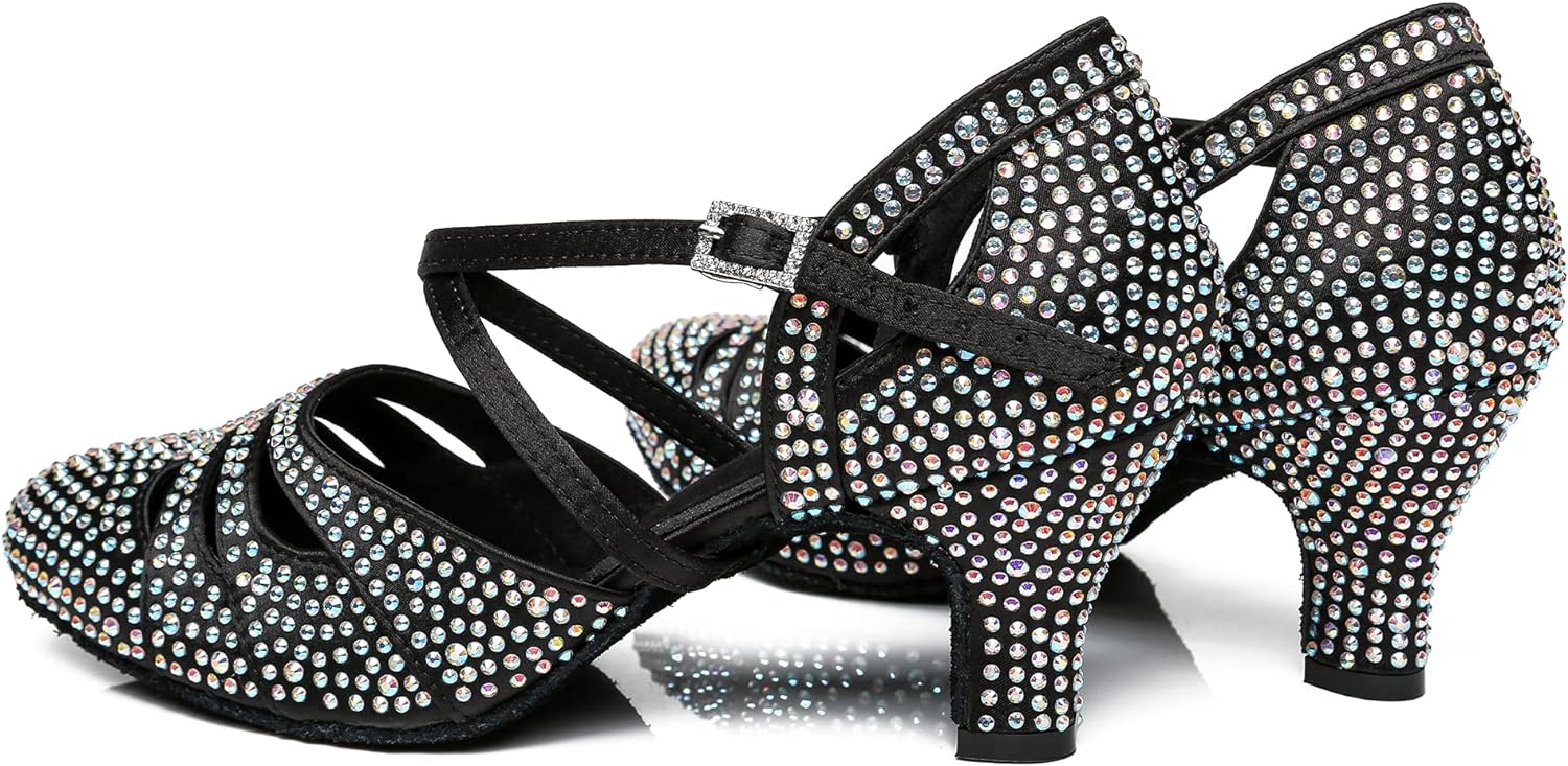 MINITOO Rhinestone Dancing Shoes Women Mid Heel Latin Ballroom Pumps L – BUYO