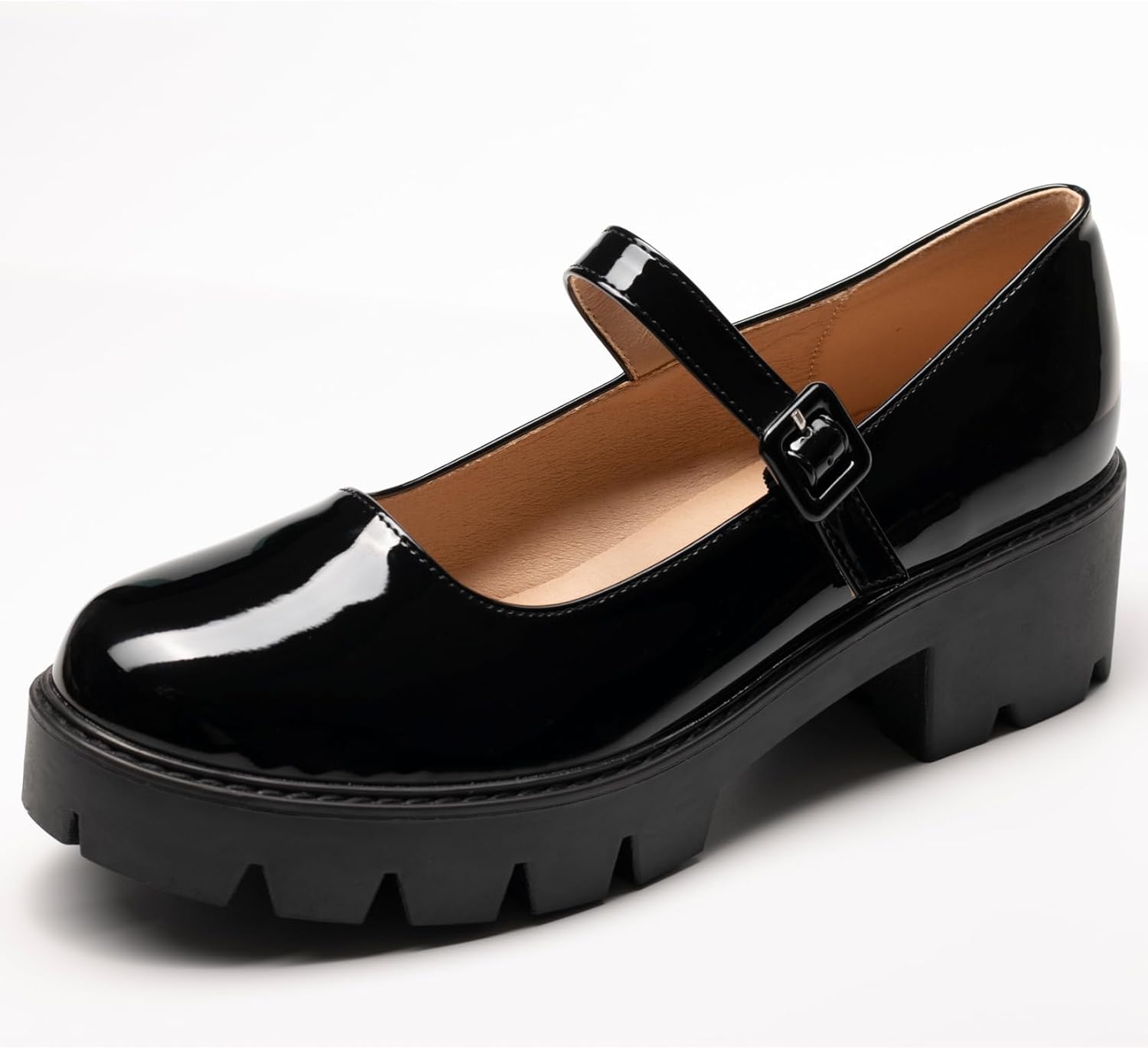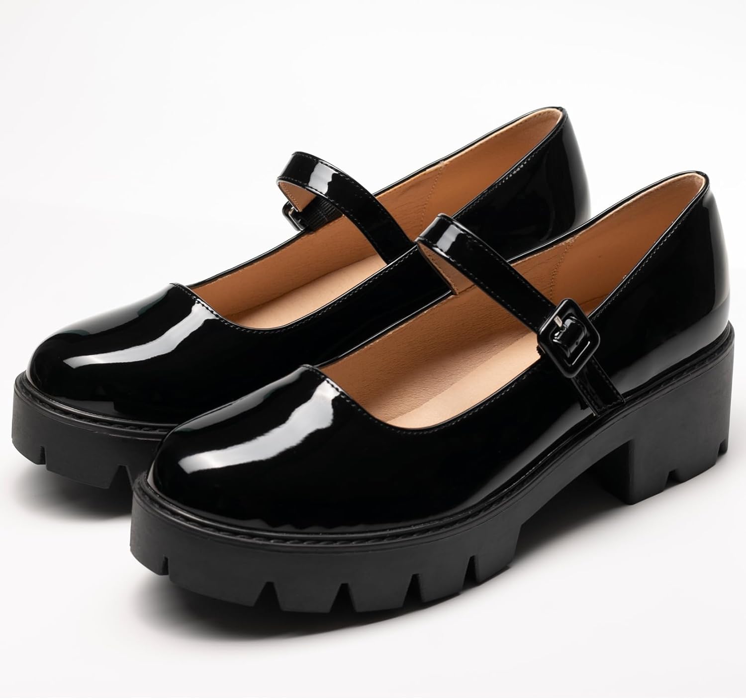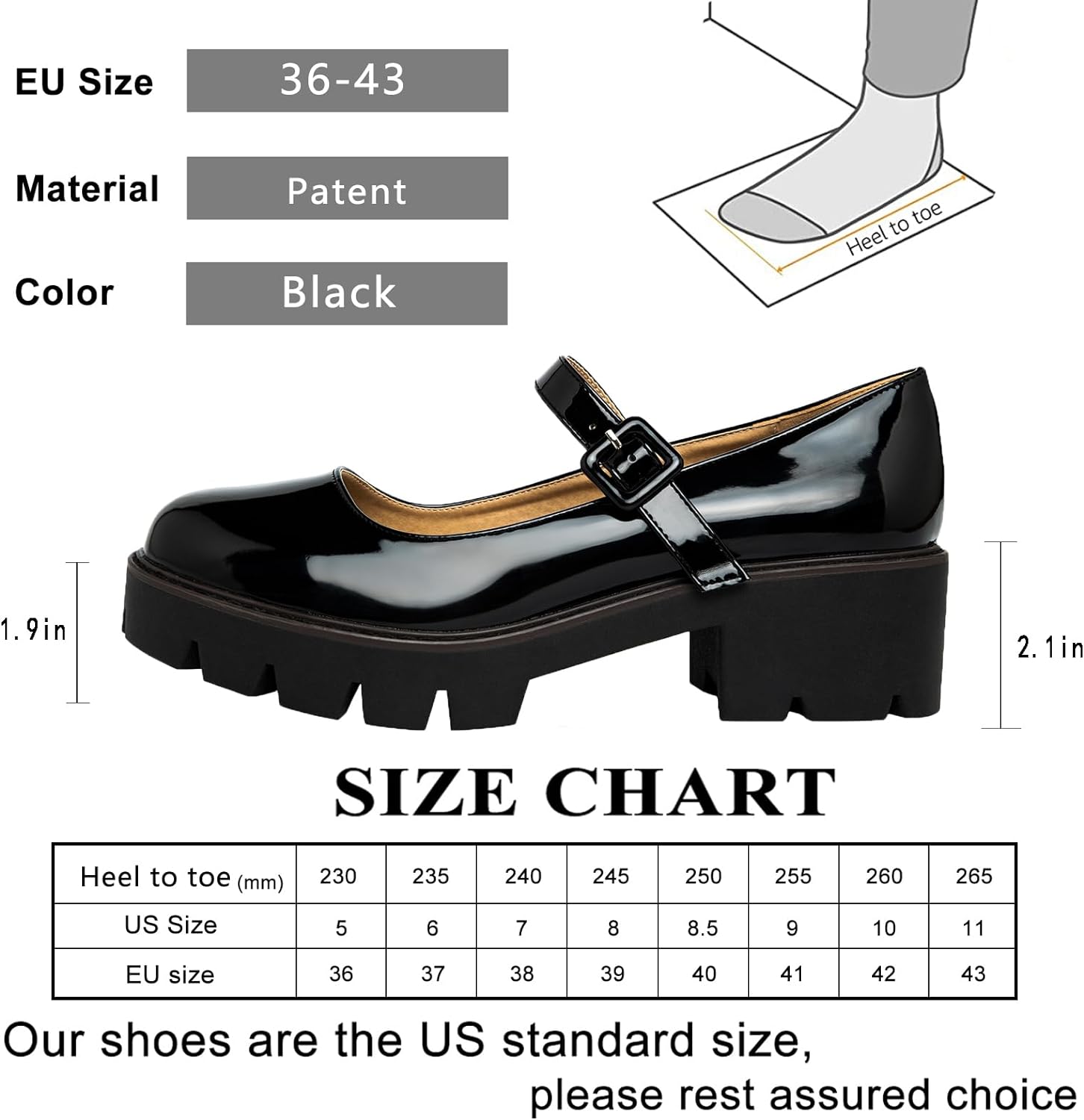 Women's Round Toe Ankle Strap Mary Janes Platform Low Heel Chunky Pumps Oxford Dress Shoes FeaturesShoes Type: Women's Mary Jane PumpsPattern Type: SolidClosure Type: Buckle Ankle StrapToe Shape: Round Toe Material: PU LeatherSeason: Spring/Summer/AutumnOccasion:Casual/Work/Vacation/Date/Holiday/School/Shopping/OutdoorSize ChartUS Size 4.5 B (M) US = Heel to Toe 8 7/8 inch(22.5cm) = EU 35US Size 5 B(M) US = Heel to Toe 9 inch(23cm) = EU 36US Size 6 B (M) US = Heel to Toe 9 1/4 inch(23.5cm) = EU 37US Size 7 B (M) US = Heel to Toe 9 1/2 inch(24cm) = EU 38US Size 8 B(M) US = Heel to Toe 9 5/8 inch(24.5cm) = EU 39US Size 8.5 B (M) US = Heel to Toe 9 7/8 inch(25cm) = EU 40US Size 9 B (M) US = Heel to Toe 10 inch(25.5cm) = EU 41US Size 10 B (M) US = Heel to Toe 10 1/4 inch(26cm) = EU 42Please carefully refer to this size details to get a best match.