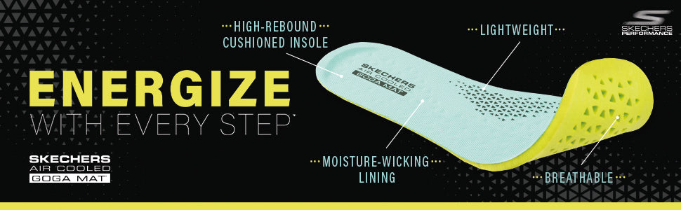 - Skechers Air Cooled Goga Mat breathable insole with high-rebound cushioning