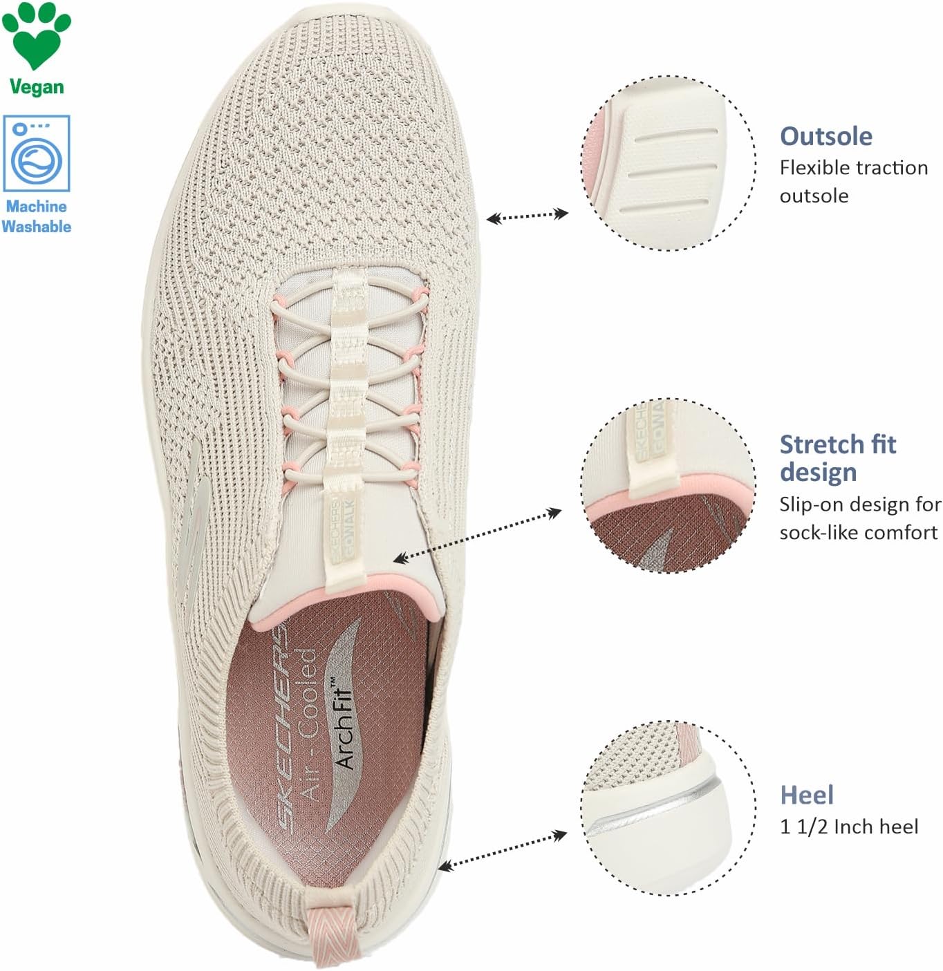 Patented Skechers Arch Fit® insole system with podiatrist-certified arch support Podiatrist-designed shape developed with 20 years of data and 120,000 unweighted foot scans Removable insole helps mold to your foot to reduce shock and increase weight dispersion Lightweight, responsive ULTRA GO® cushioning High-rebound Comfort Pillar Technology® for added support Crafted with 100% vegan materials