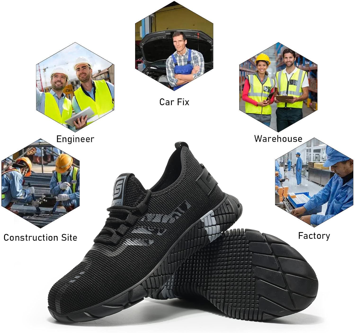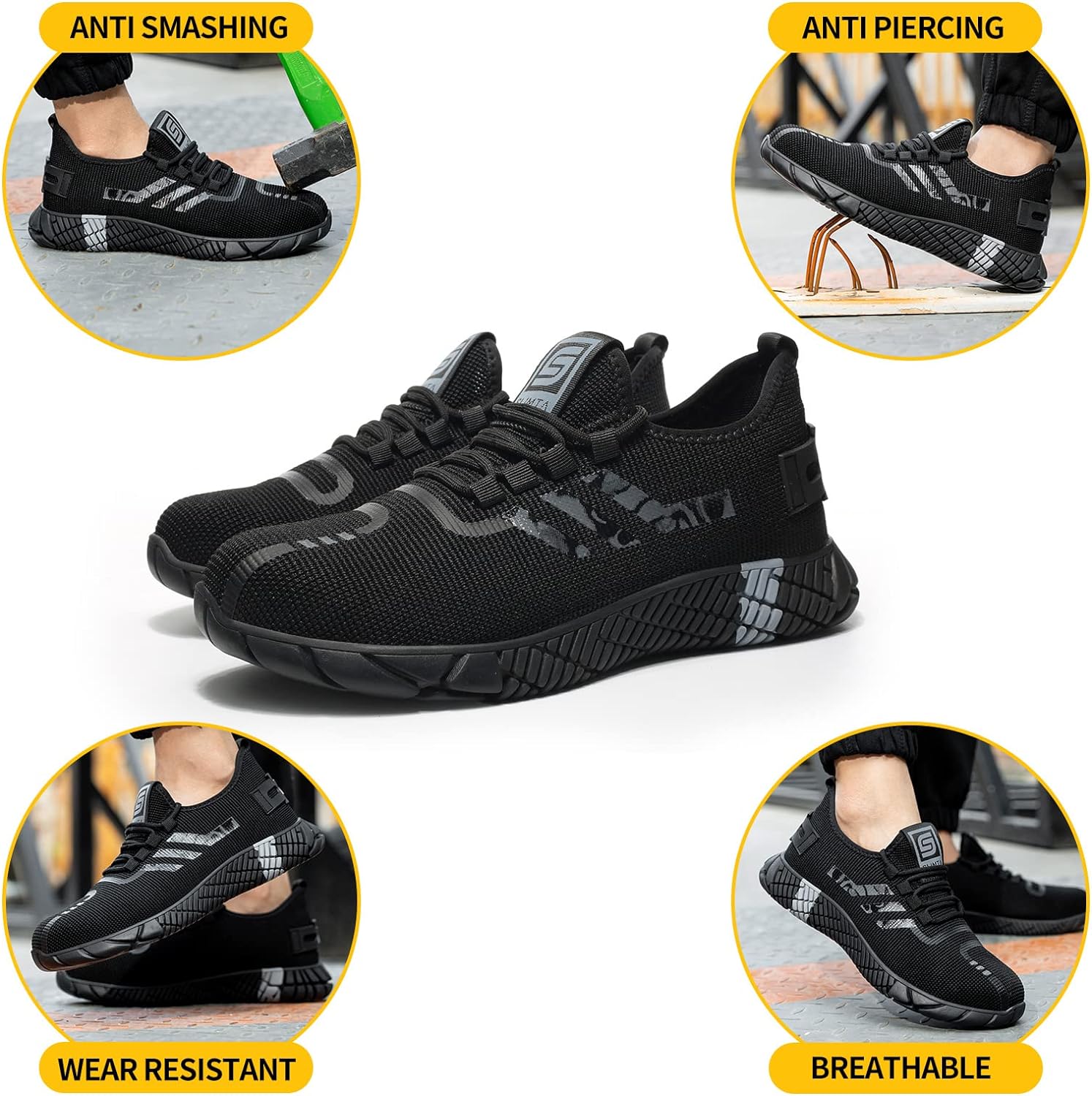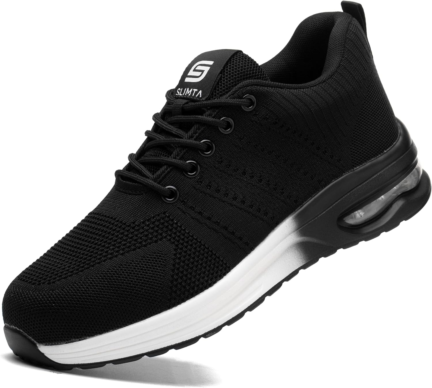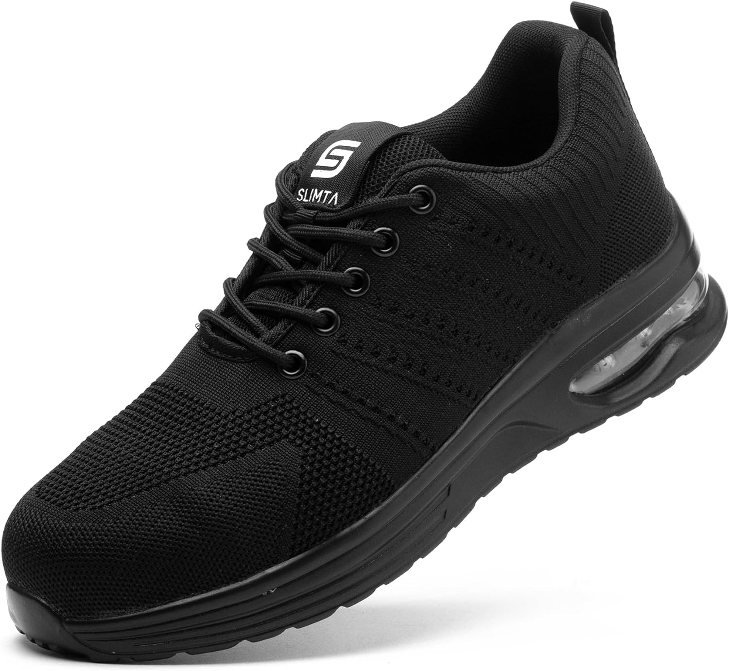 SLIMTA Safety Shoes Men Women Steel Toe Cap Boots Mesh Breathable Lightweight Comfortable Puncture Proof Industrial Factory Work Protective Black Sneakers