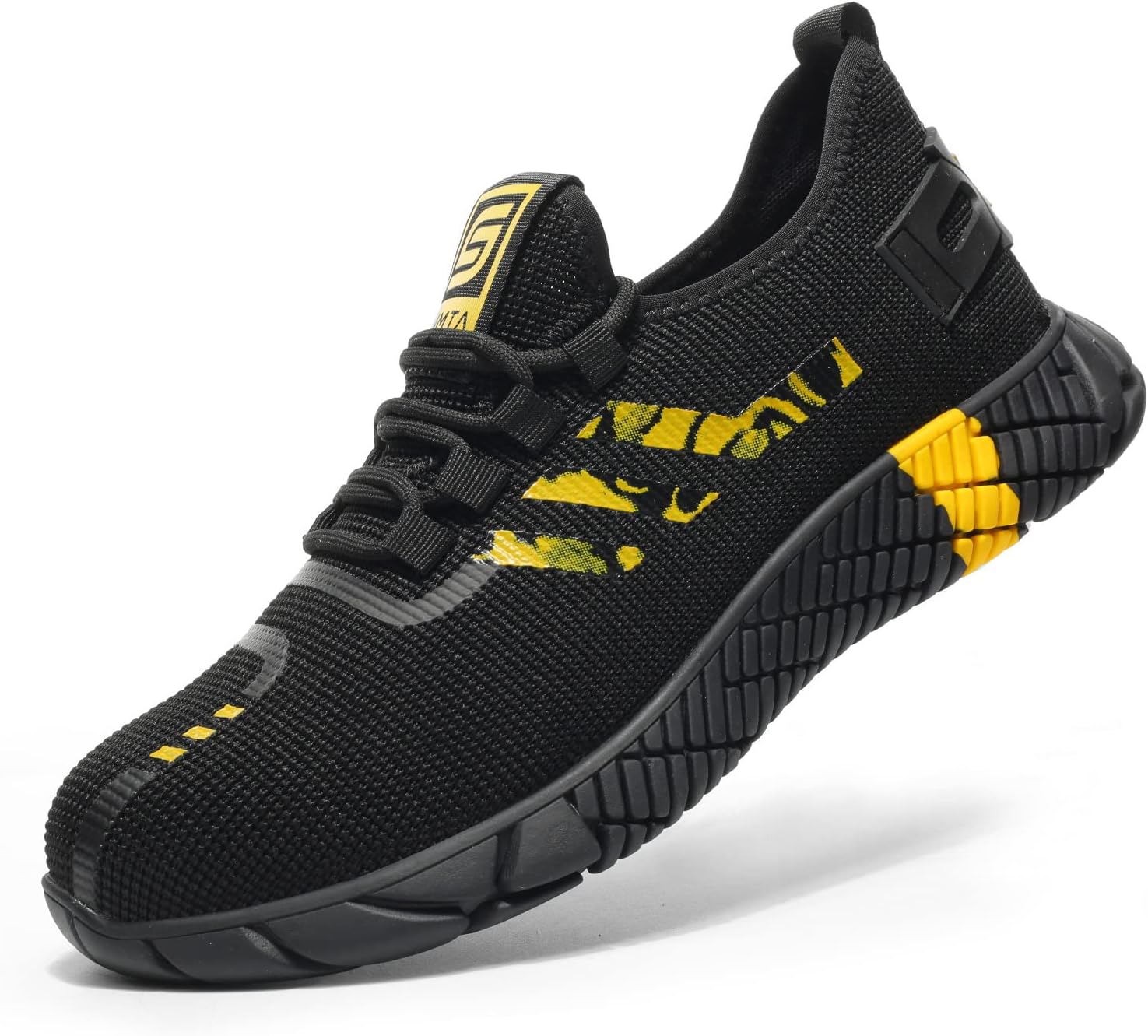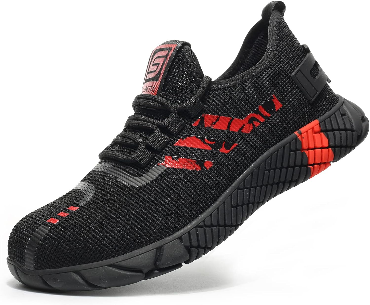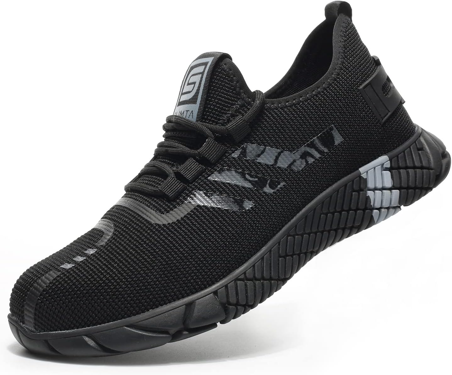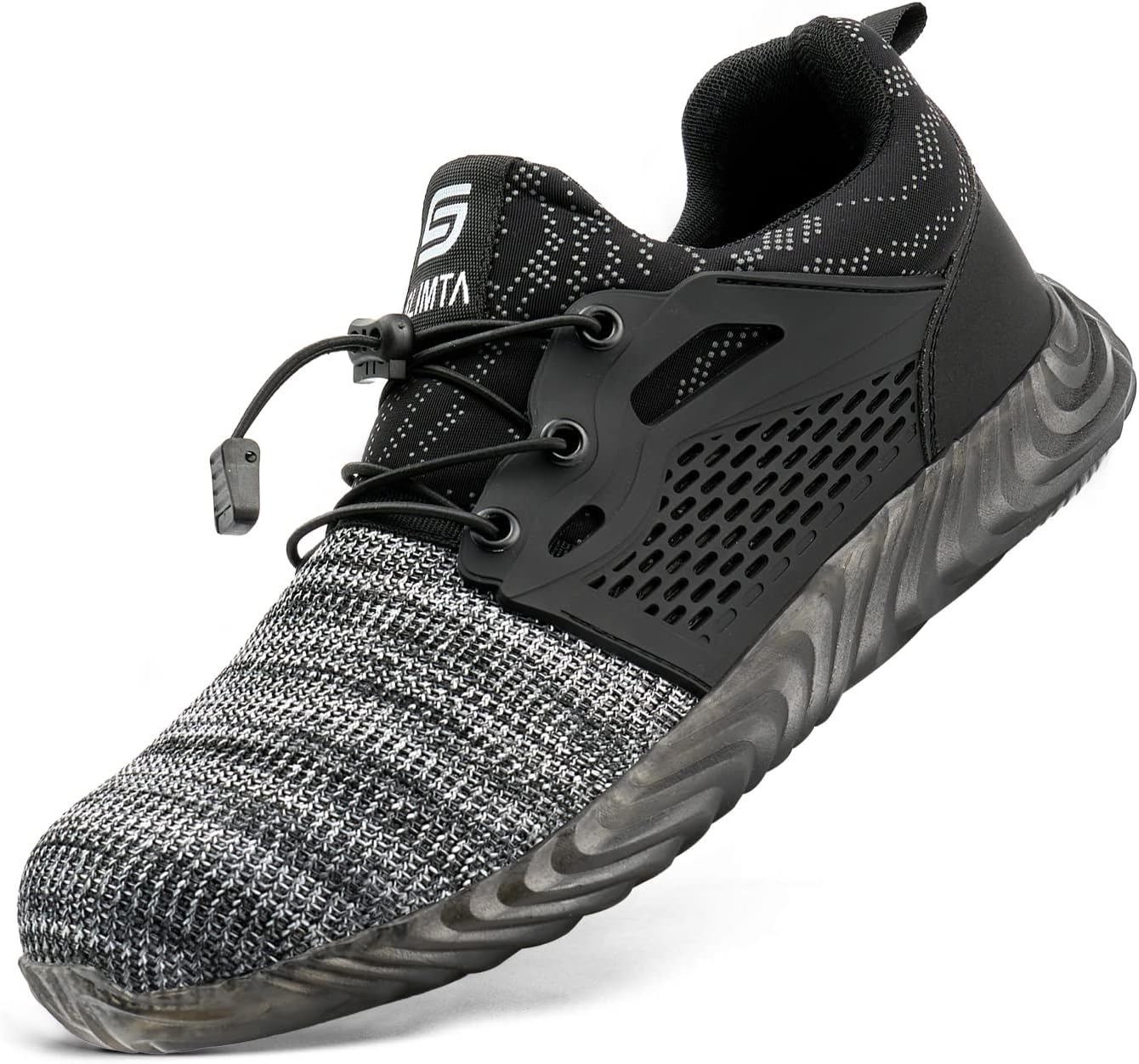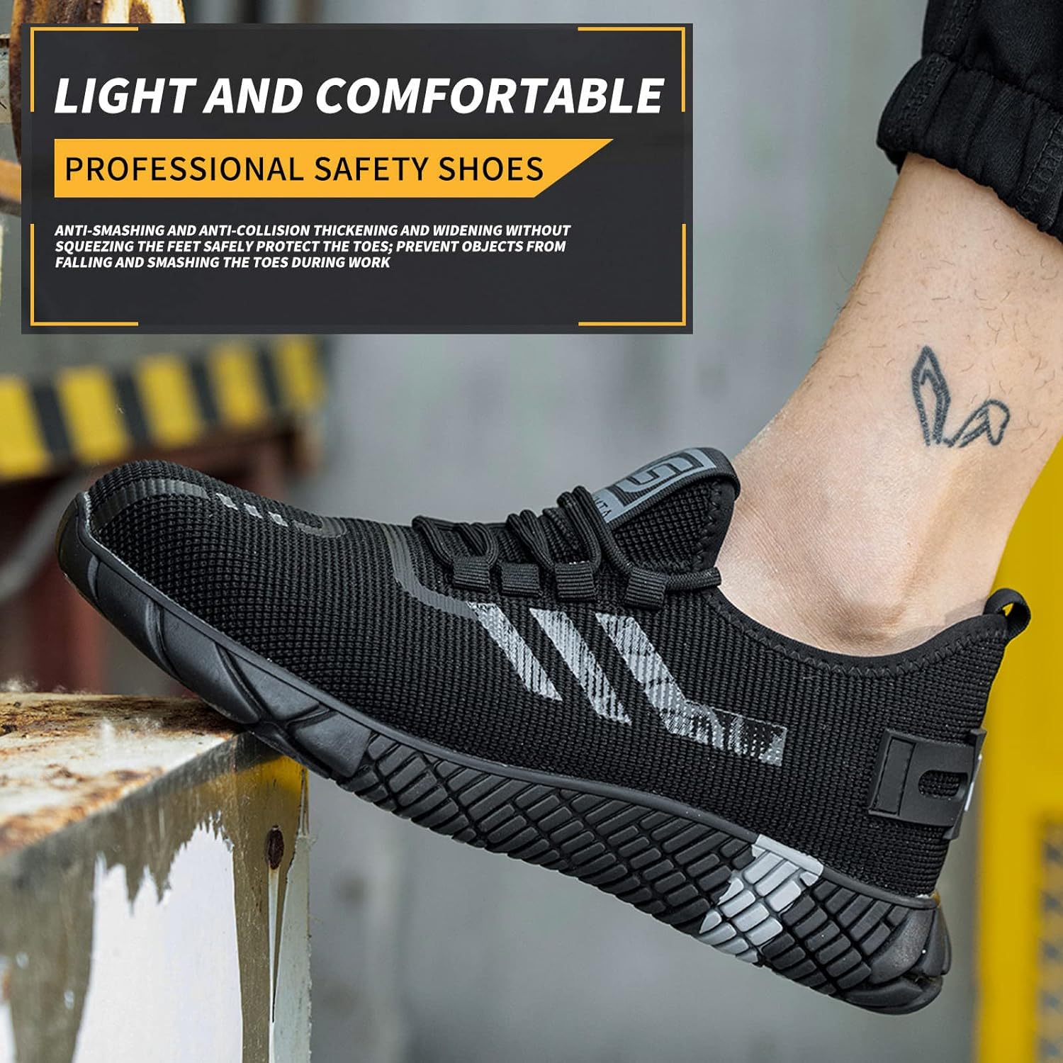 SLIMTA Safety Shoes Men Women Steel Toe Cap Boots Mesh Breathable Lightweight Comfortable Puncture Proof Industrial Factory Work Protective Black Sneakers