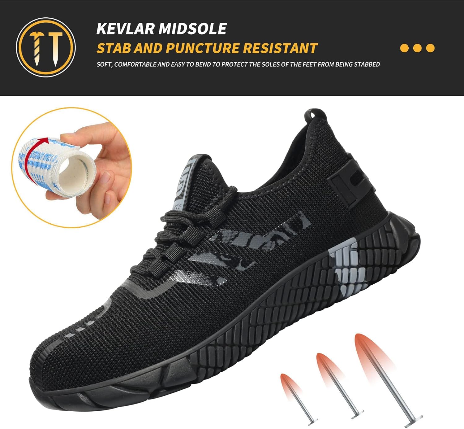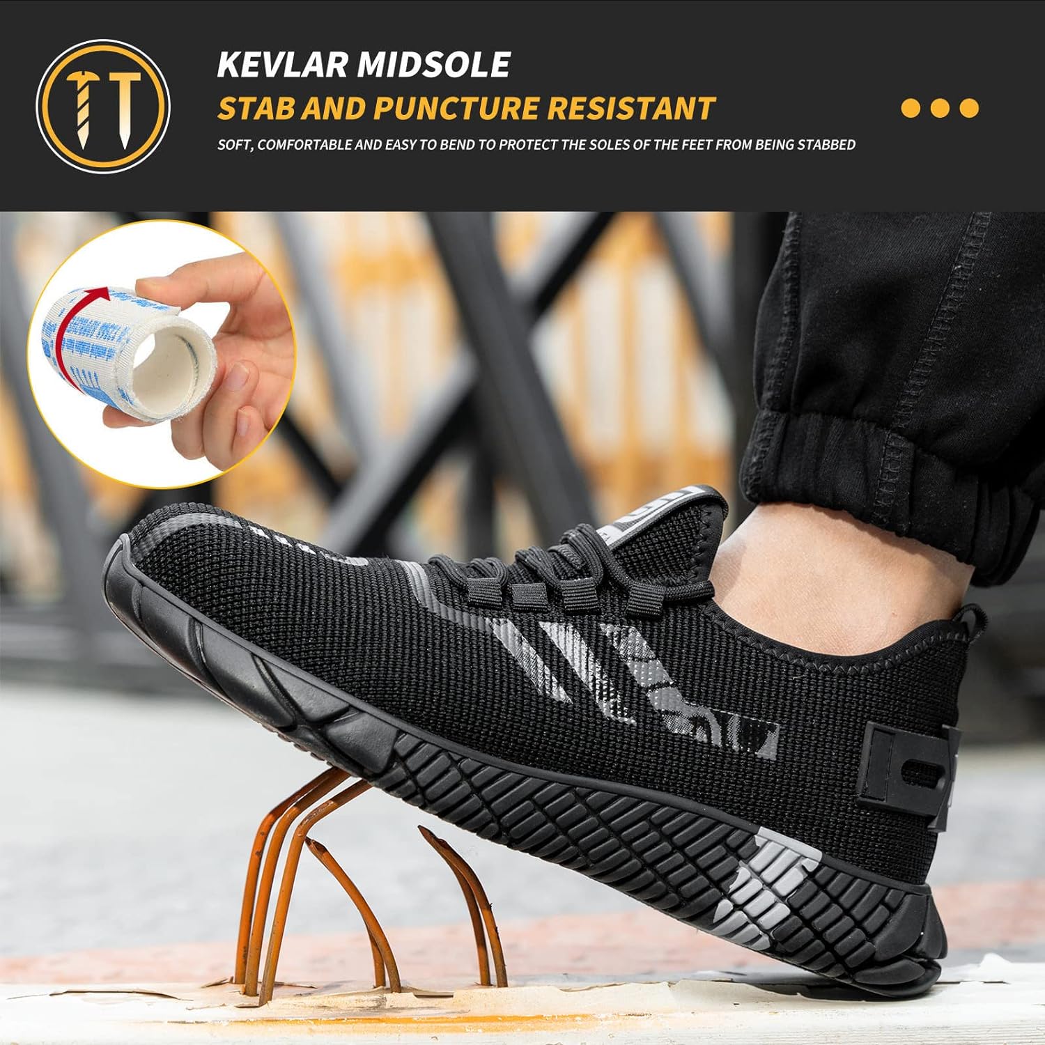 • 【PUNCTURE PROOF】The work shoes with anti-puncture flexible Kevlar midsole can prevent your feet from being harmed by sharp objects like nails, steel bars or other construction waste.