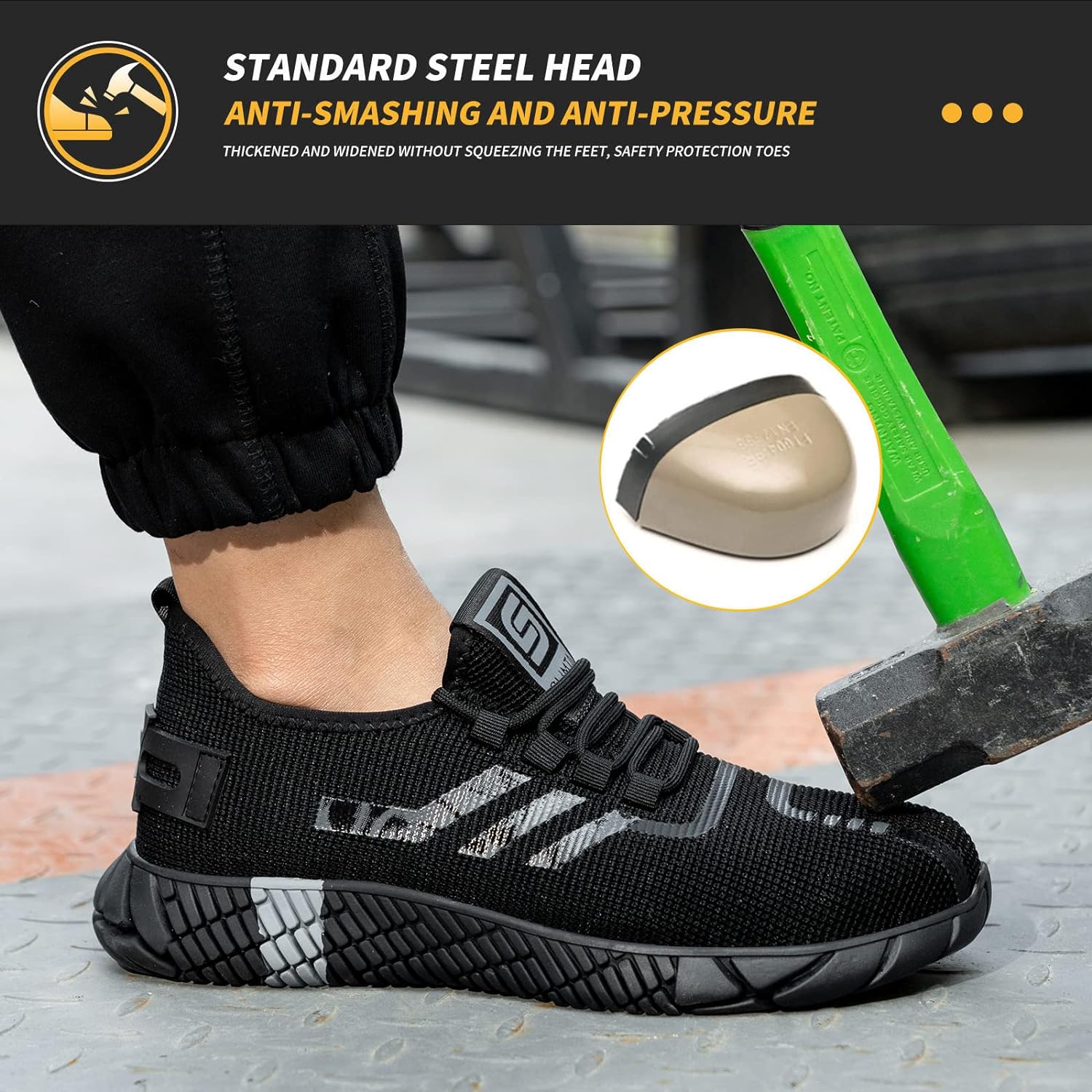 • 【ANTI-SMASHING】The safety shoes with British standard steel toe cap can withstand 200J impact force, better protect your feet from falling or rolling objects