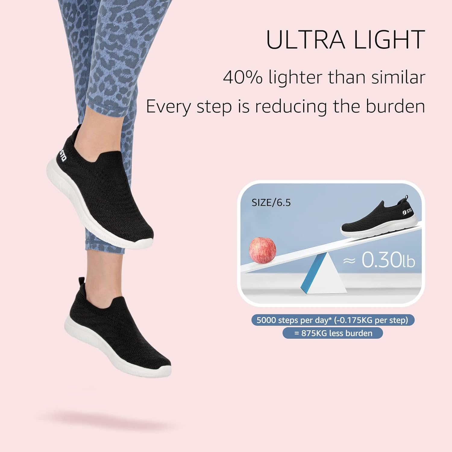 • [Breathable Mesh]: STQ women slip on walking shoes feature a highly elastic and skin-friendly knitted mesh upper for bringing ultimate comfort to the feet. Breathable and comfortable mesh keep your feet fresh all day