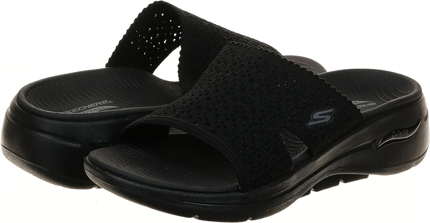 Your feet get the support and comfort they so richly deserve in the Skechers GO WALK Arch Fit®. This slide sandal features a breathable mesh upper with a supportive Arch Fit® contoured footbed and a lightweight, responsive ULTRA GO® cushioning. Construction Breathable mesh upper with side cutouts Comfort slide sandal design Machine washable 1 3/4-inch heel Skechers® and Arch Fit® logo details Details Patented Skechers Arch Fit® contoured footbed with podiatrist-certified arch support Podiatrist-designed shape developed with 20 years of data and 120,000 unweighted foot scans Contoured footbed helps mold to your foot to reduce shock and increase weight dispersion Lightweight, responsive ULTRA GO® cushioning High-rebound Comfort Pillar Technology® for added support