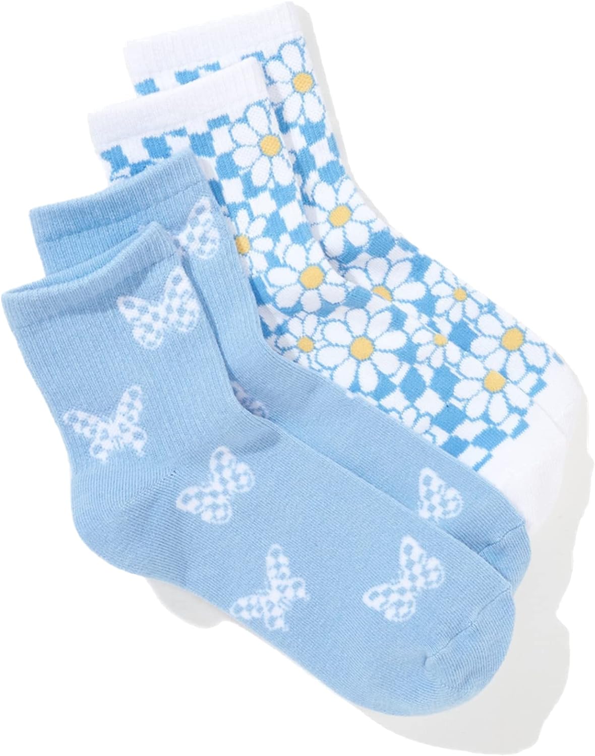 - AE Checkered Flower Boyfriend Sock 2-Pack