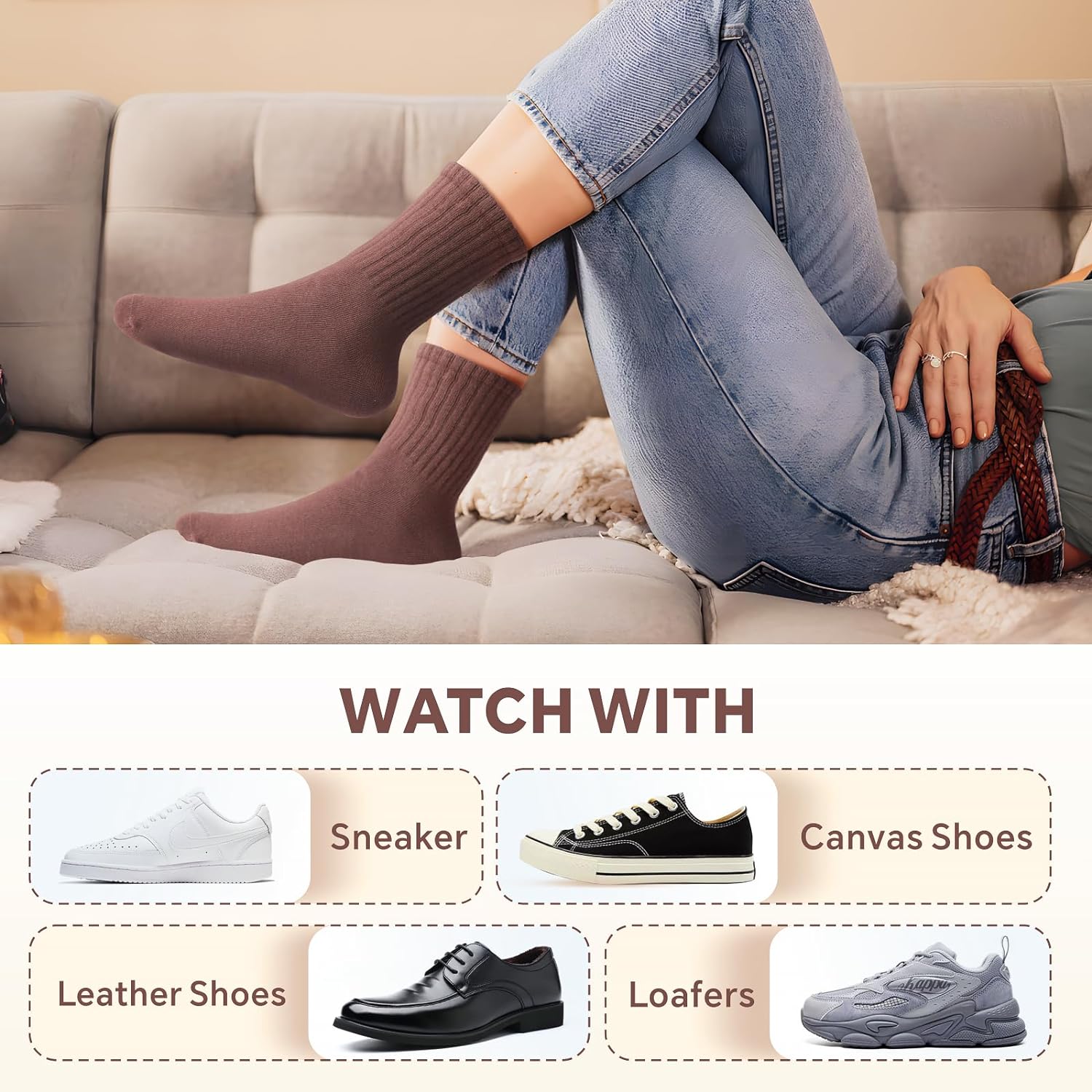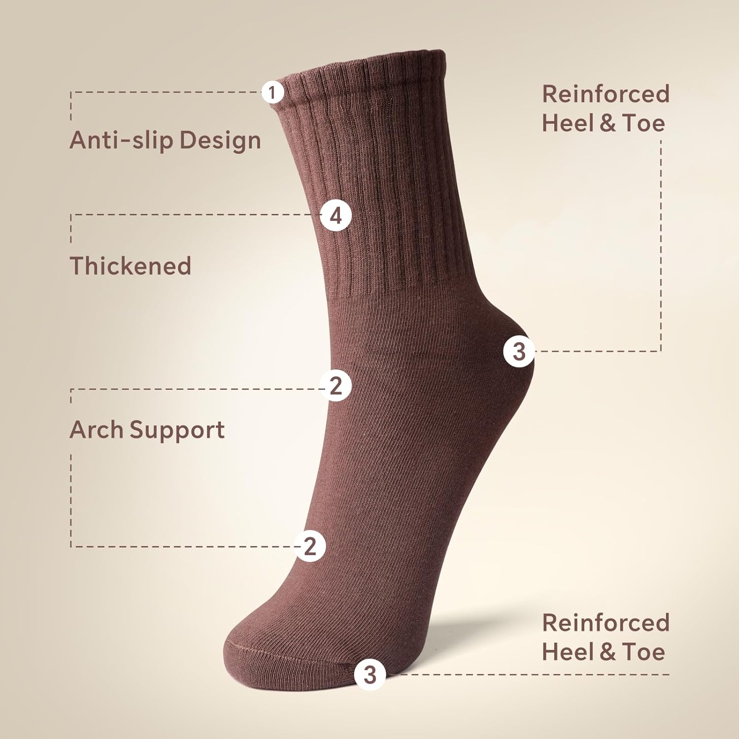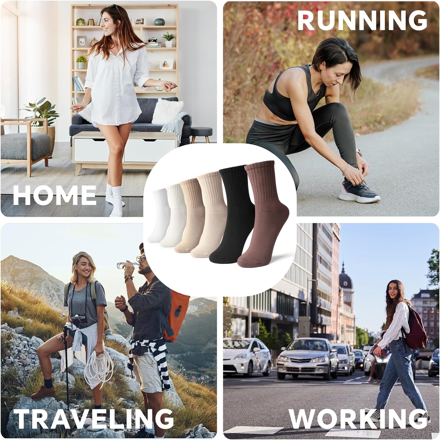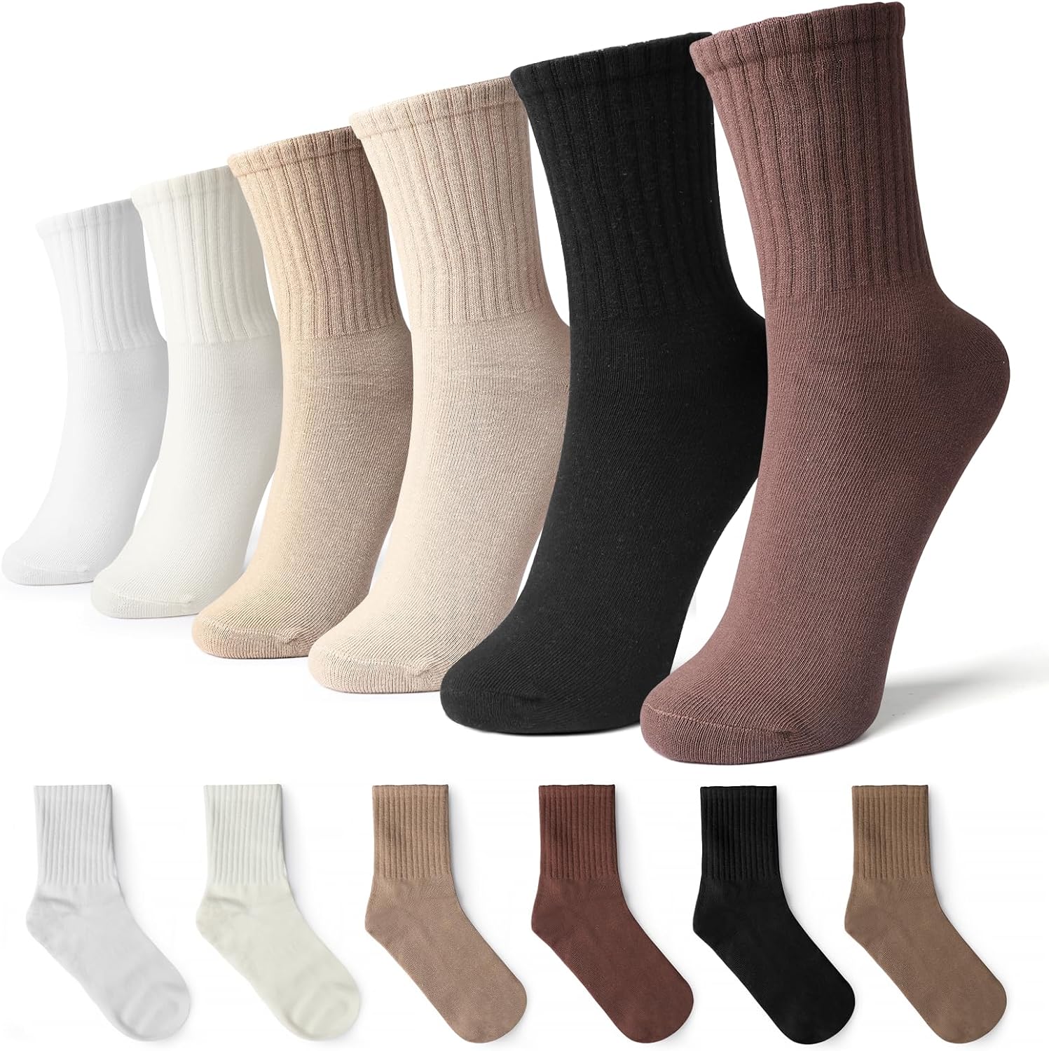 - 【Socks for Any Scene】Perfect for work, family, formal and leisure occasions, walking, running, and all outdoor activities.Mixed Color 6 Pairs per Pack (Black,Brown,Light Coffee,Khaki,Cream,White)