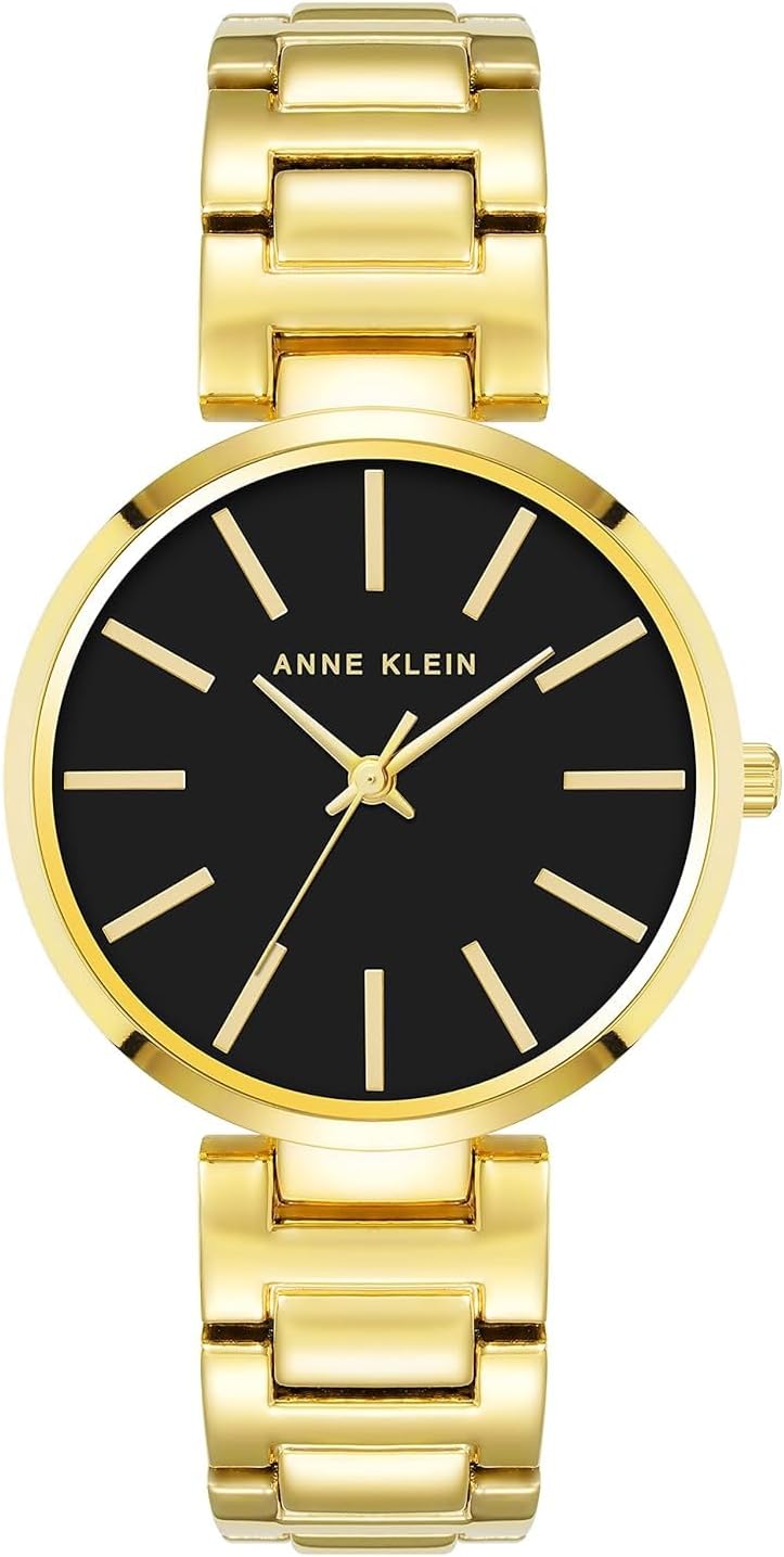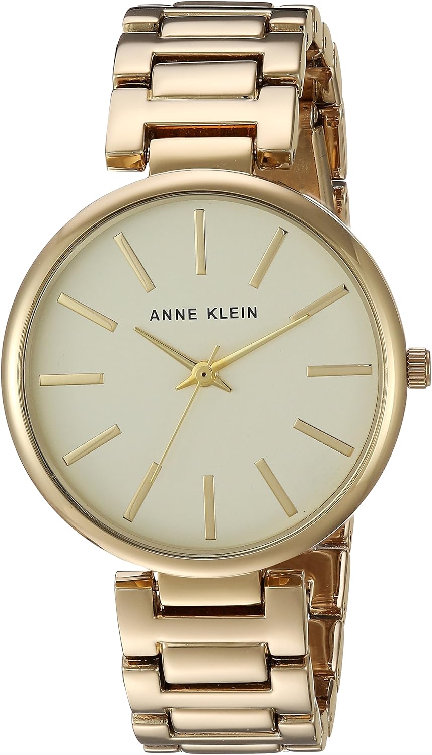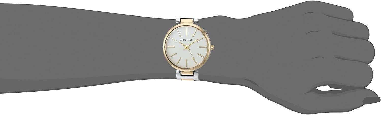Watch Sizing Guide Simple yet elegant. Metal case. Two-tone bracelet with jewelry clasp closure. Round face. Three-hand analog display with quartz movement. Dial features gold-tone hands and hour markers, crystal-embellished bezel, minute track, and Anne Klein detailing. Water resistant. Imported. Measurements: Case Height: 34 mm Case Width: 34 mm Case Depth: 8 mm Band Width: 16 0⁄1 mm Band Circumference/Length: 8 in Weight: 2.6 oz