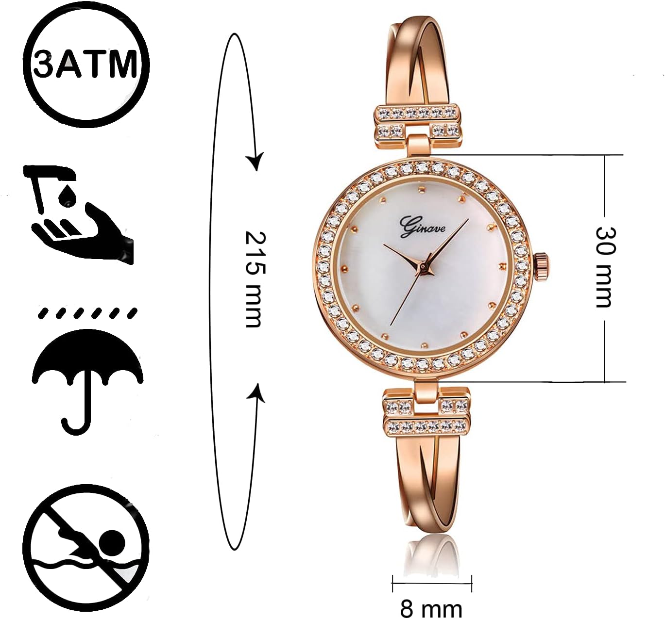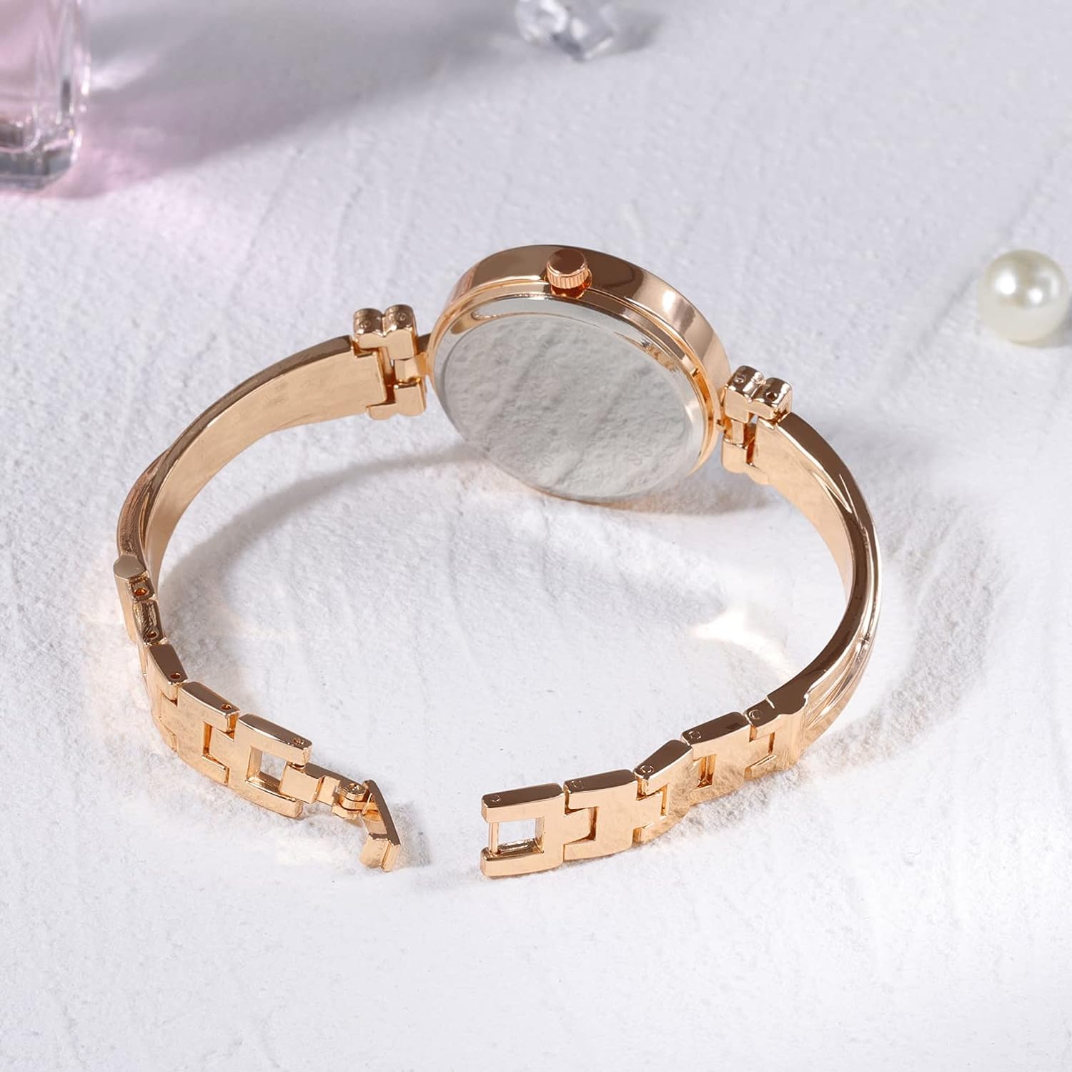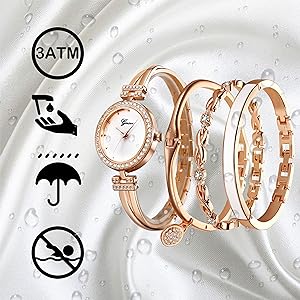 - đ -ăCOMFORTABLE & ELEGANT STRAPăRose-gold tone stainless steel bracelets easily matches with your daily dress; scratch-resistant mineral glass mirror, make it effectively protects the skin and avoids allergies, provide comfortable wearing experience.