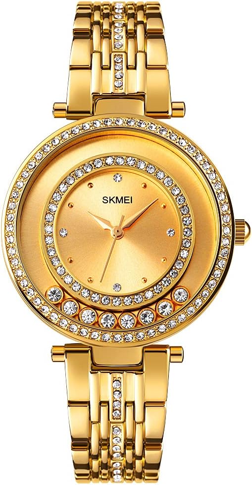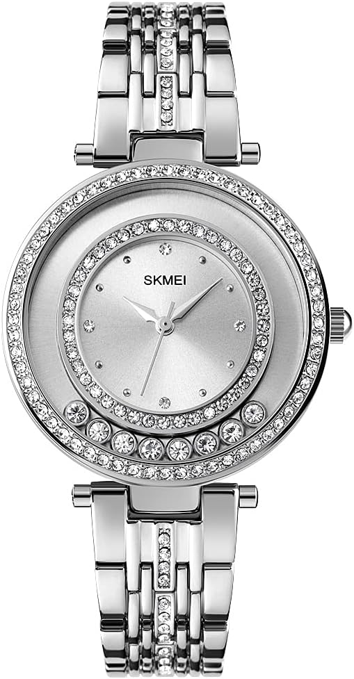 SKMEI Lady Luxury Watches for Women Crystal Rhinestone Diamond Dress Fashion Rose Gold Silver Analog Quartz 3ATM Waterproof Stainless Steel Wristwatch Girlfriend Gifts