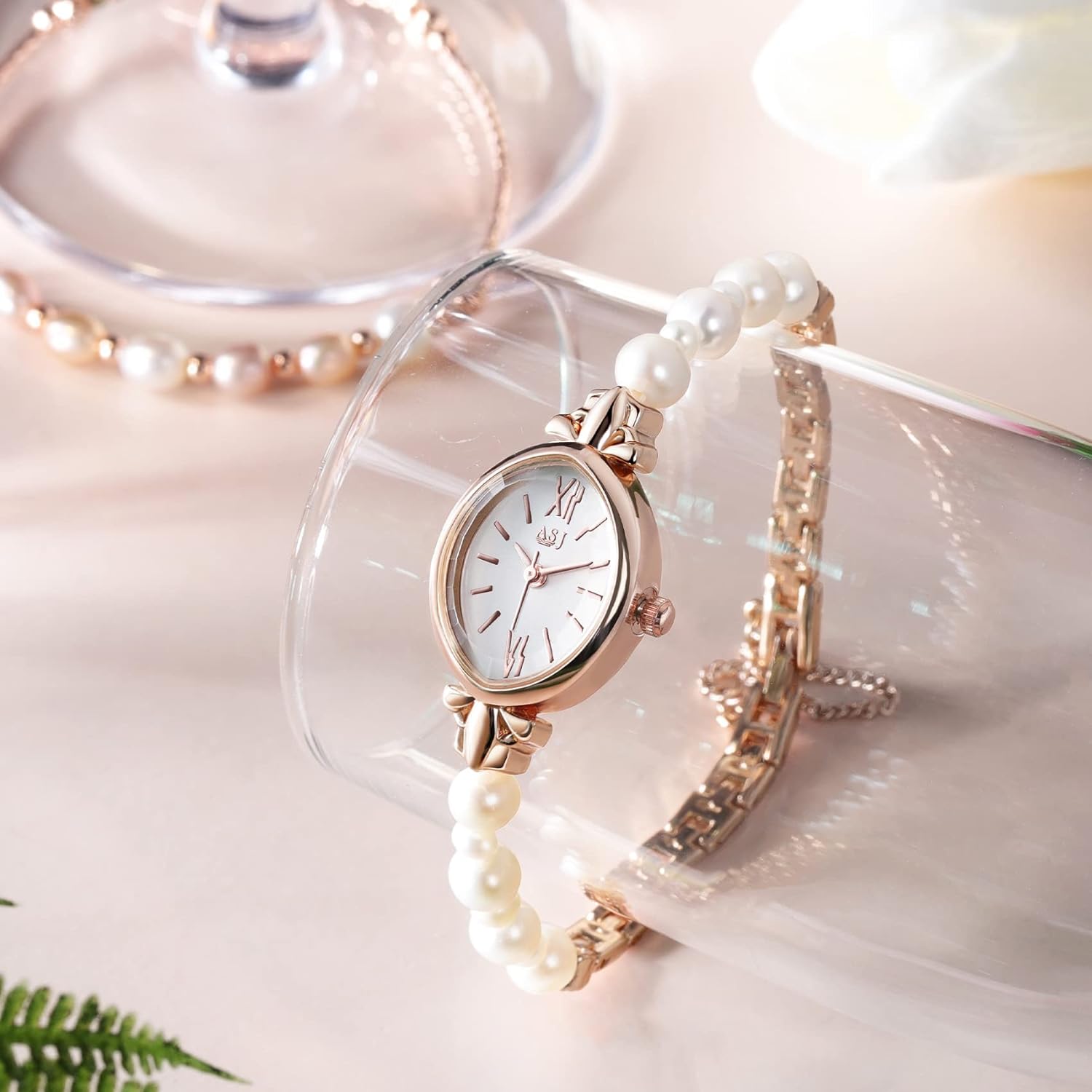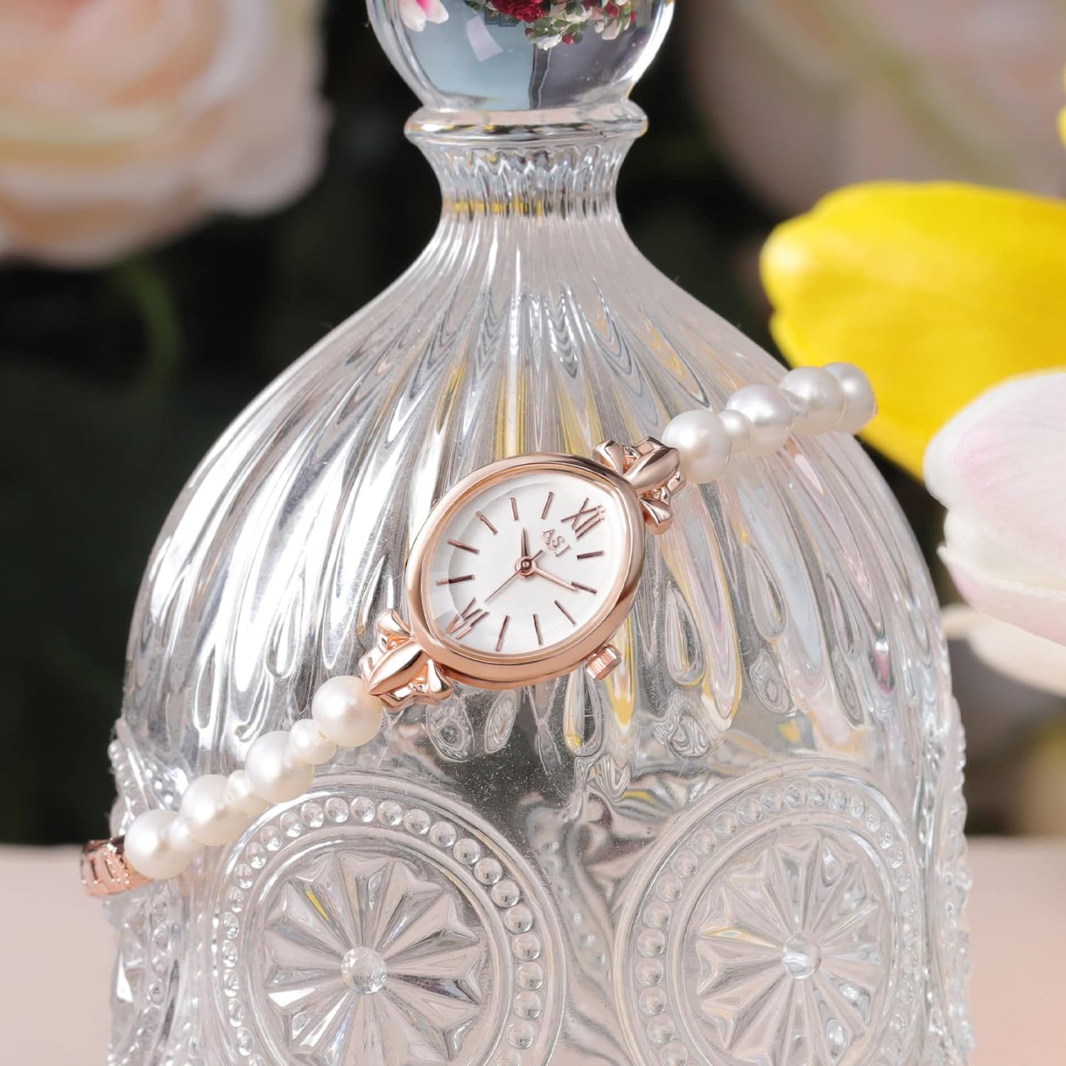- 💗 Pearl Watch and Bracelet Set: the bracelet of the watches is made of natural freshwater pearls, match with pearl bracelet, match with pearl bracelet, is suitable for your dress or daily outfit; jewelry buckle with safety chain, in case of accidentally lost from your wrist