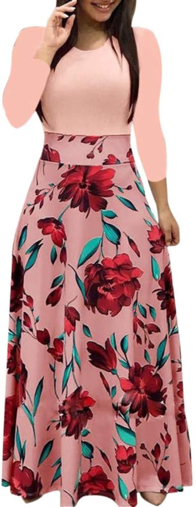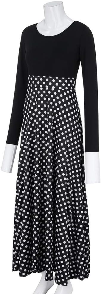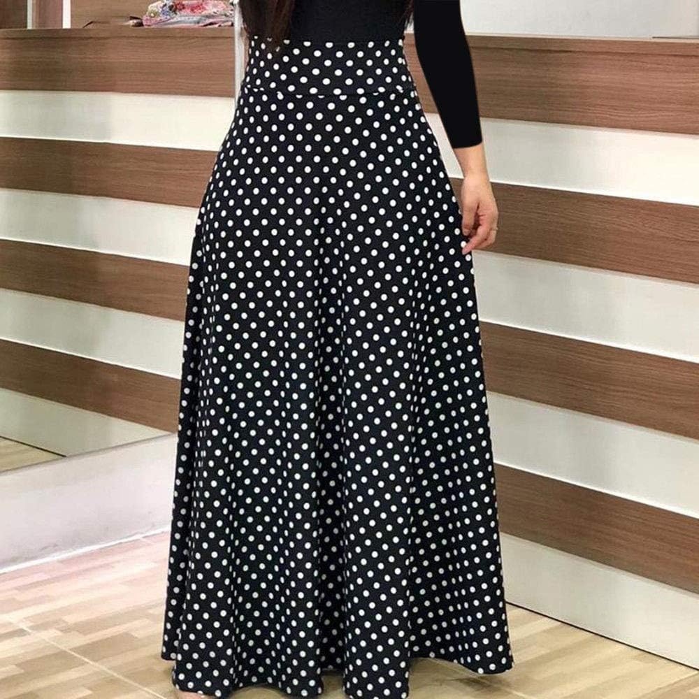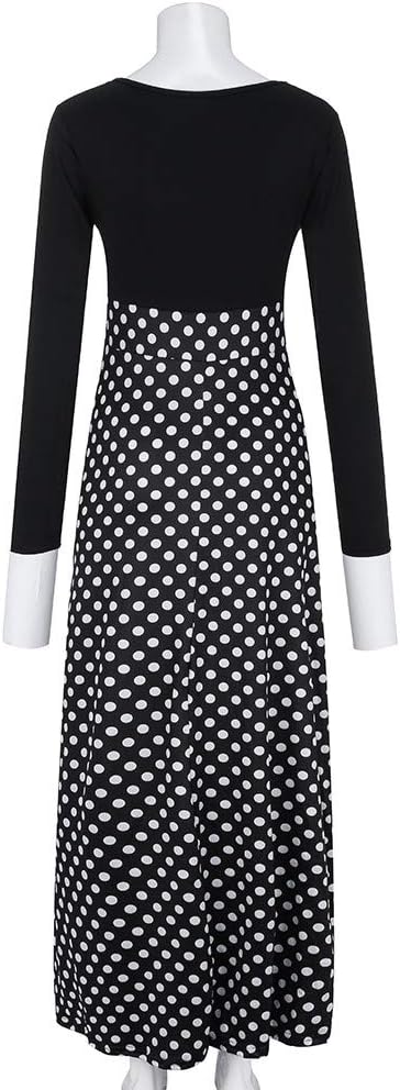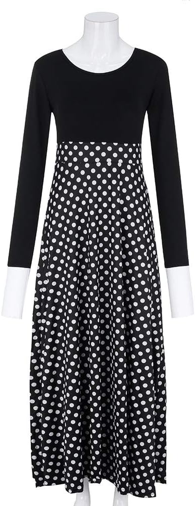 Women's Dress Bohemian Polka Dots Floral Print Maxi Dress O-Neck Long Sleeve A-Line High Waist Long Beach Dresses Casual Sundress