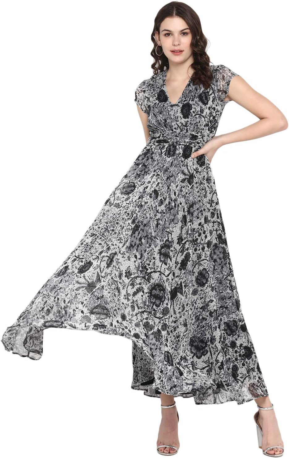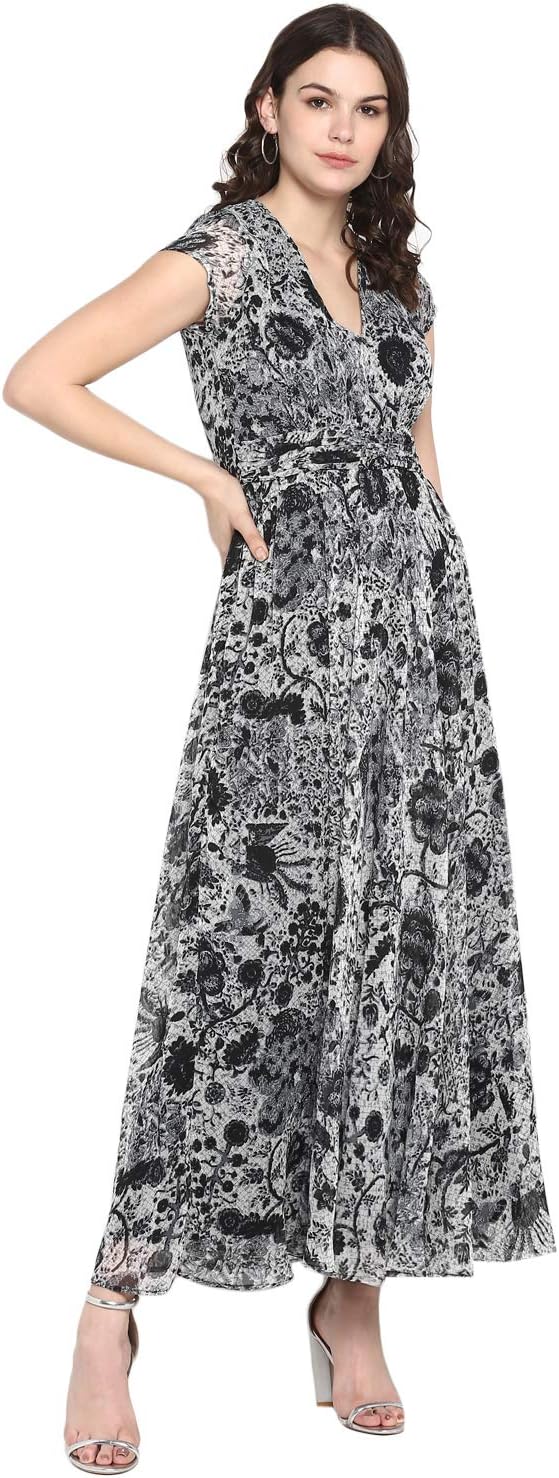 Women's Polyester Fit and Flare Maxi Casual Dress