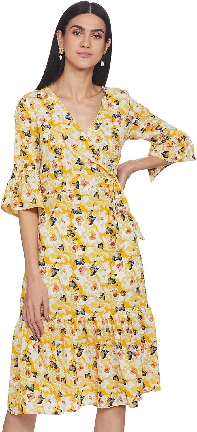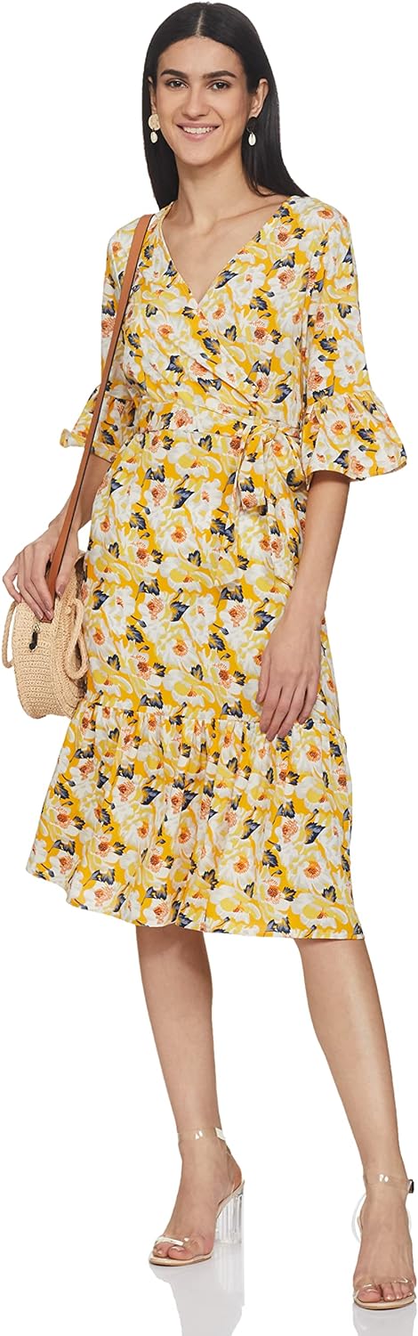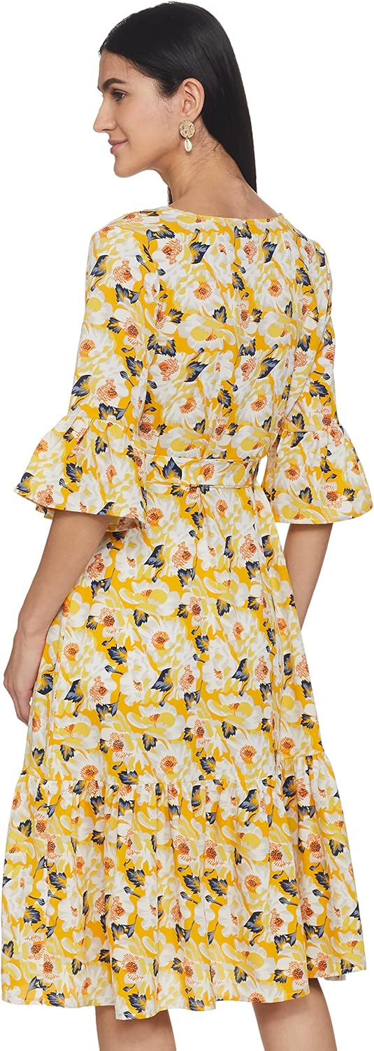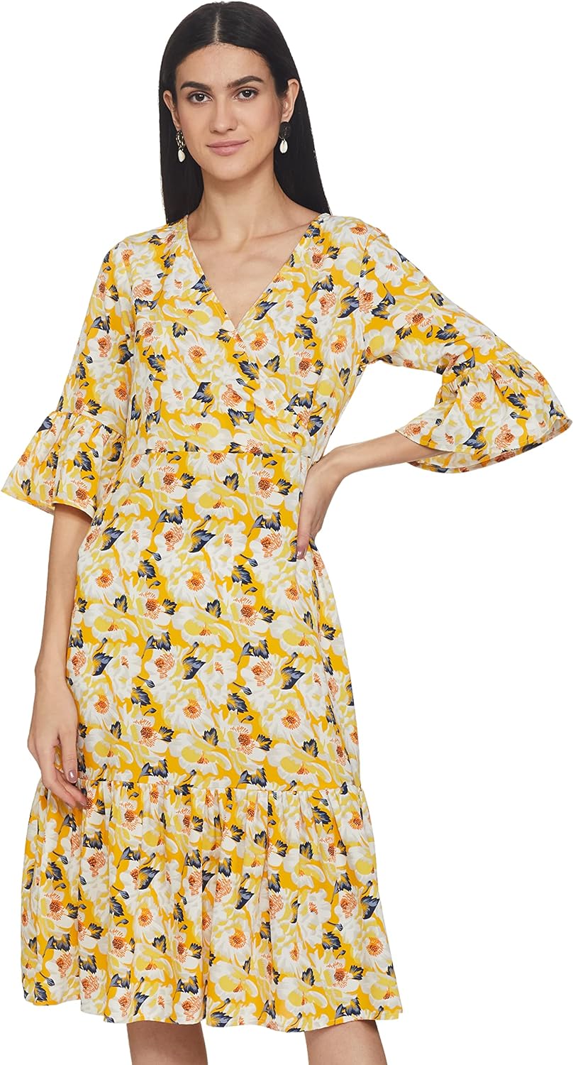 - Dress With V Neck, Quarter Sleeve With Ruffle Detail And A Flowy Fit