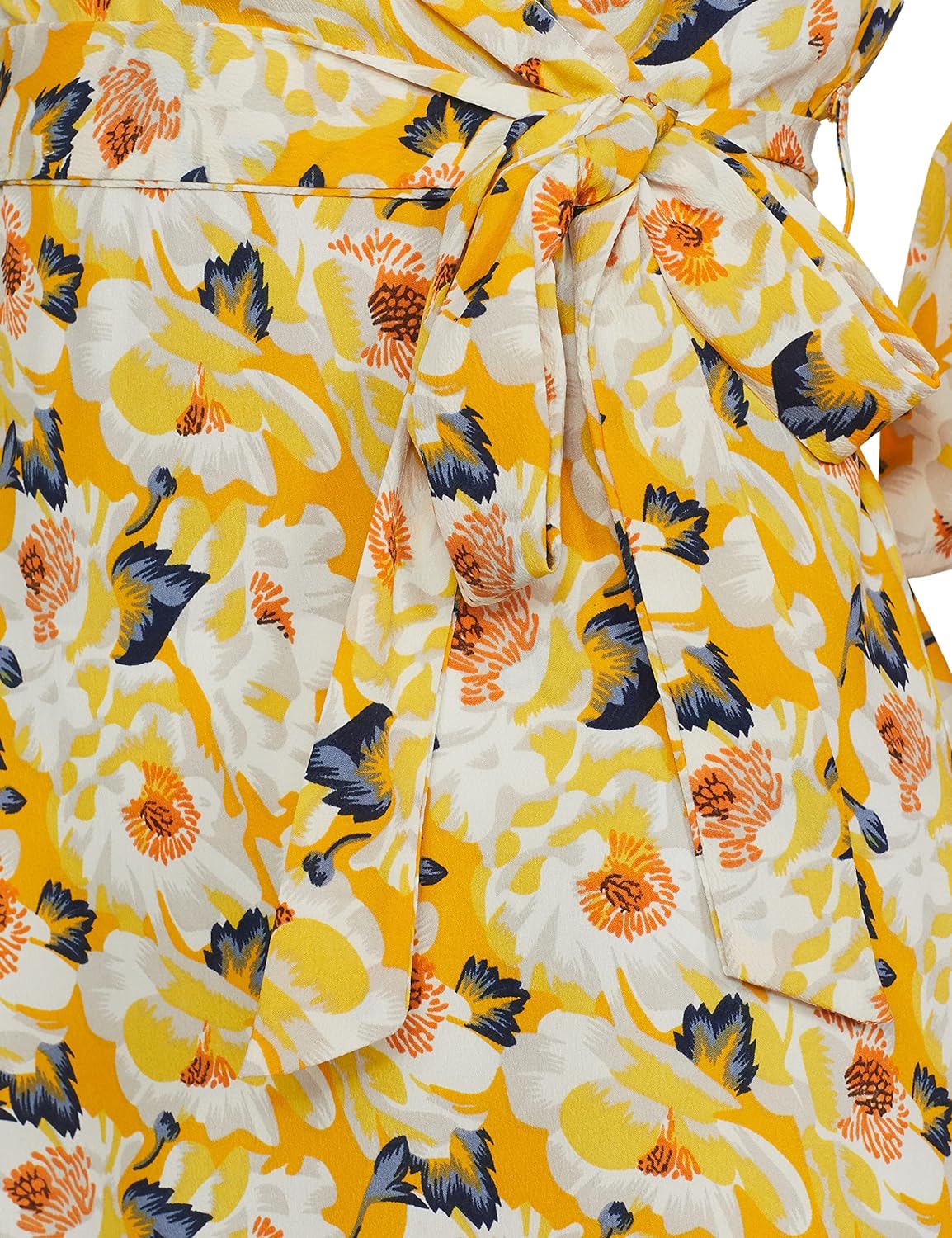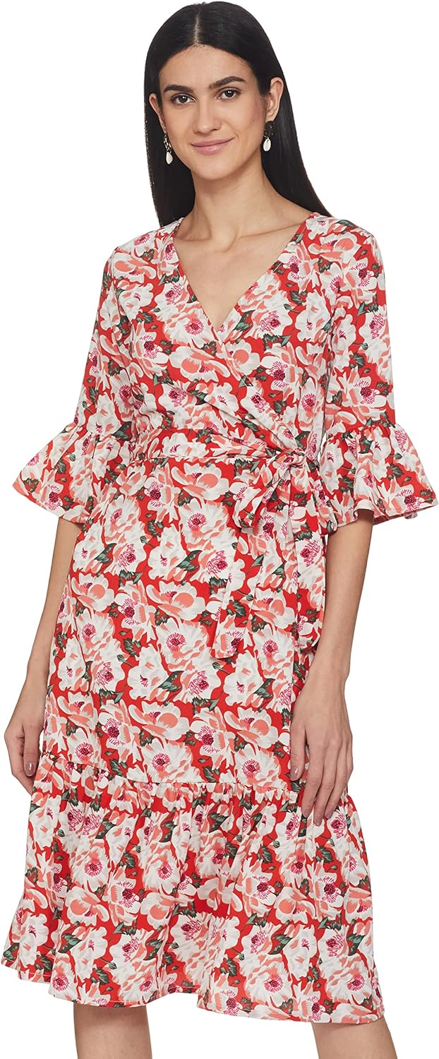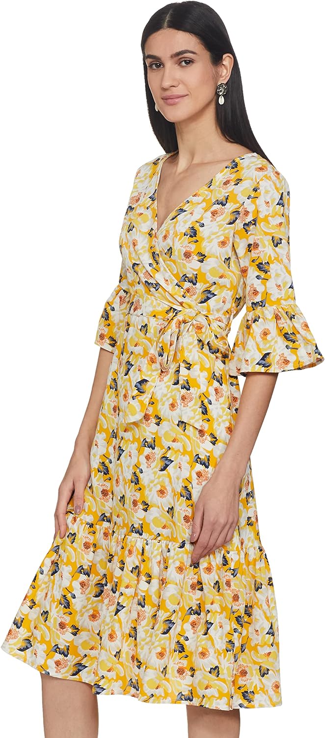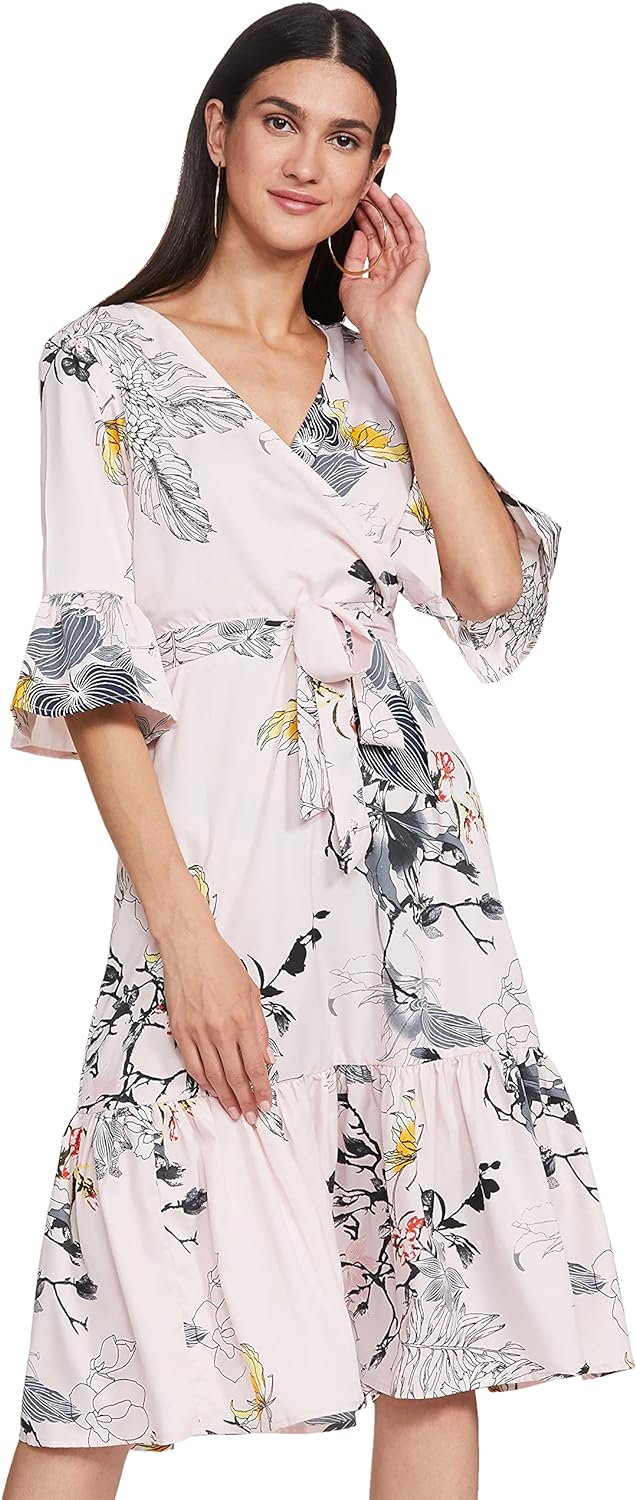 - Dress With V Neck, Quarter Sleeve With Ruffle Detail And A Flowy Fit