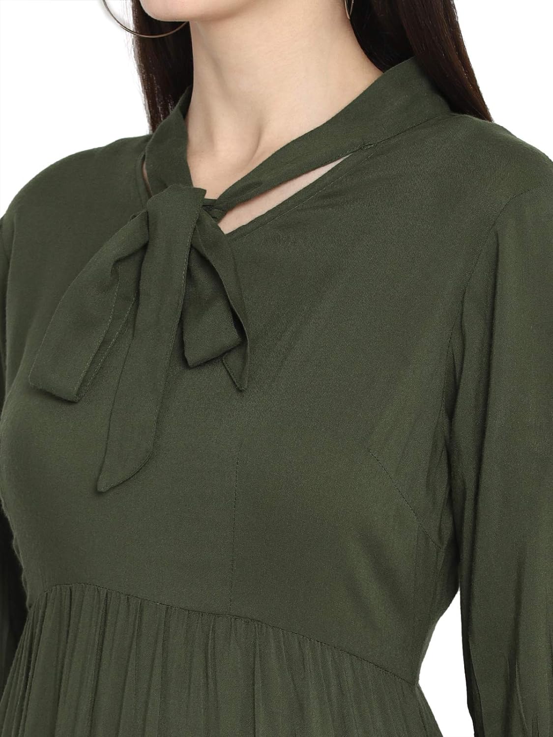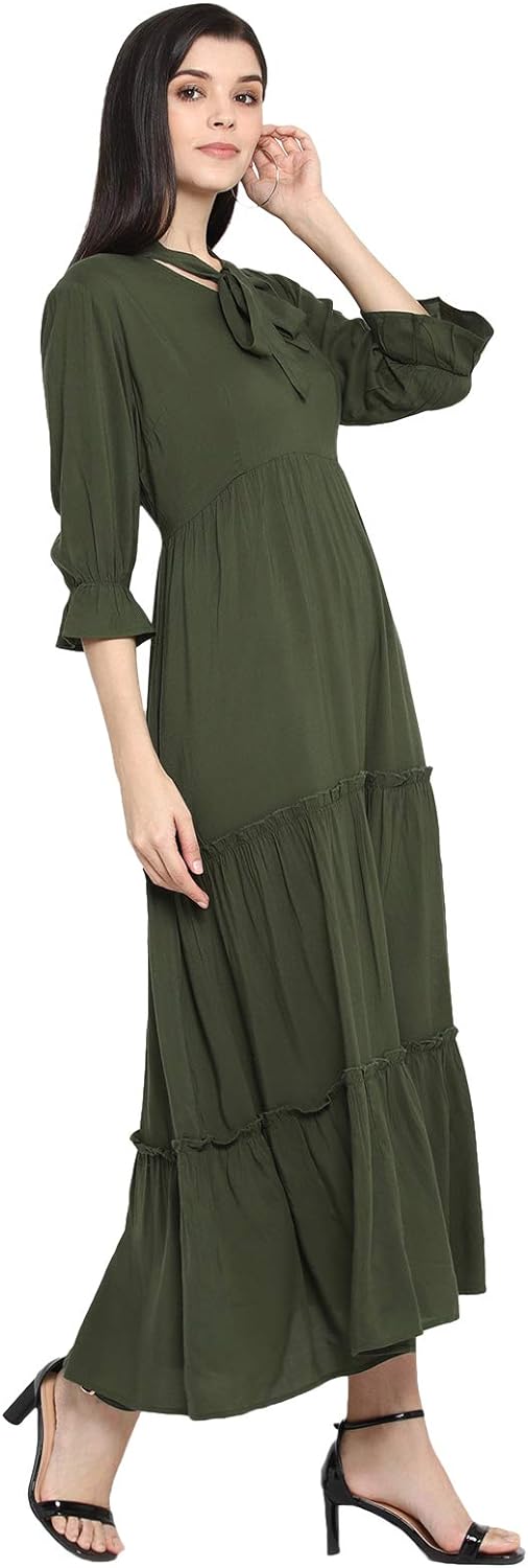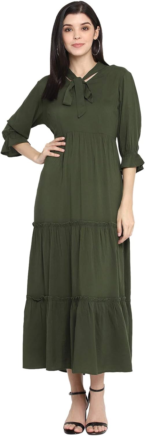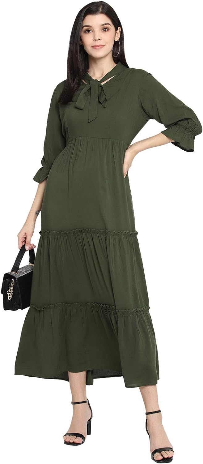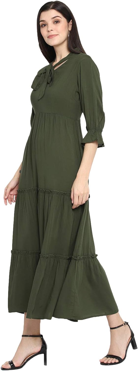 • Olive solid maxi dress with tie knot