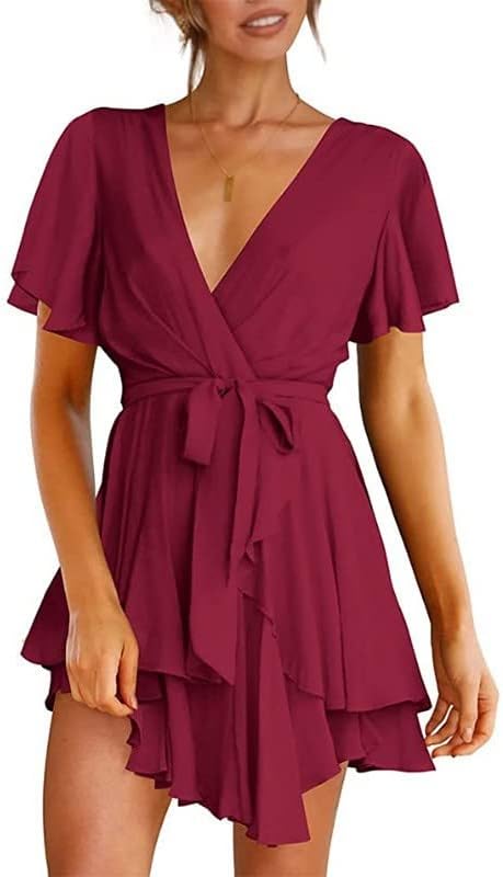 - Short dress with deep v neck and ruffle hem design, show your fashion and casual style.