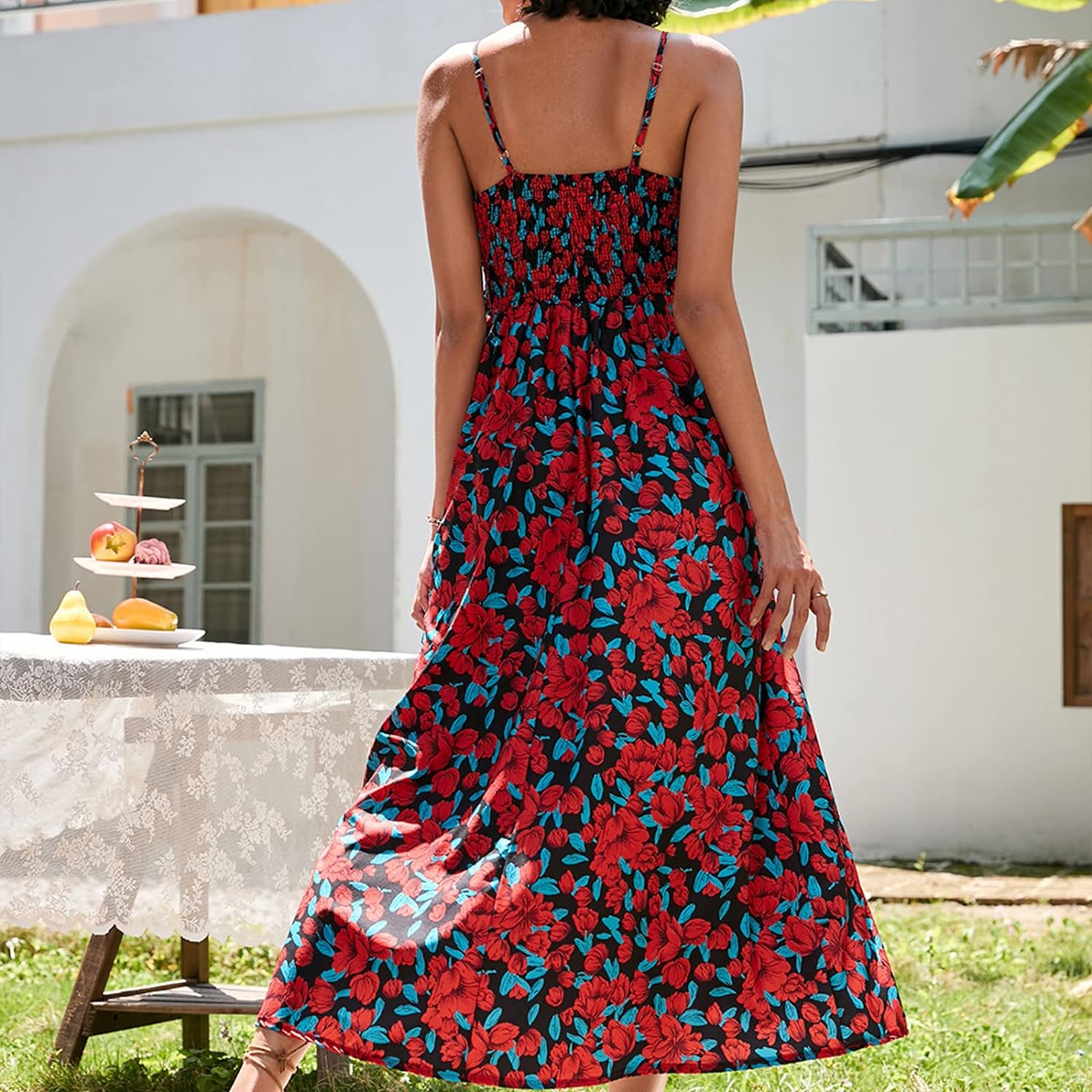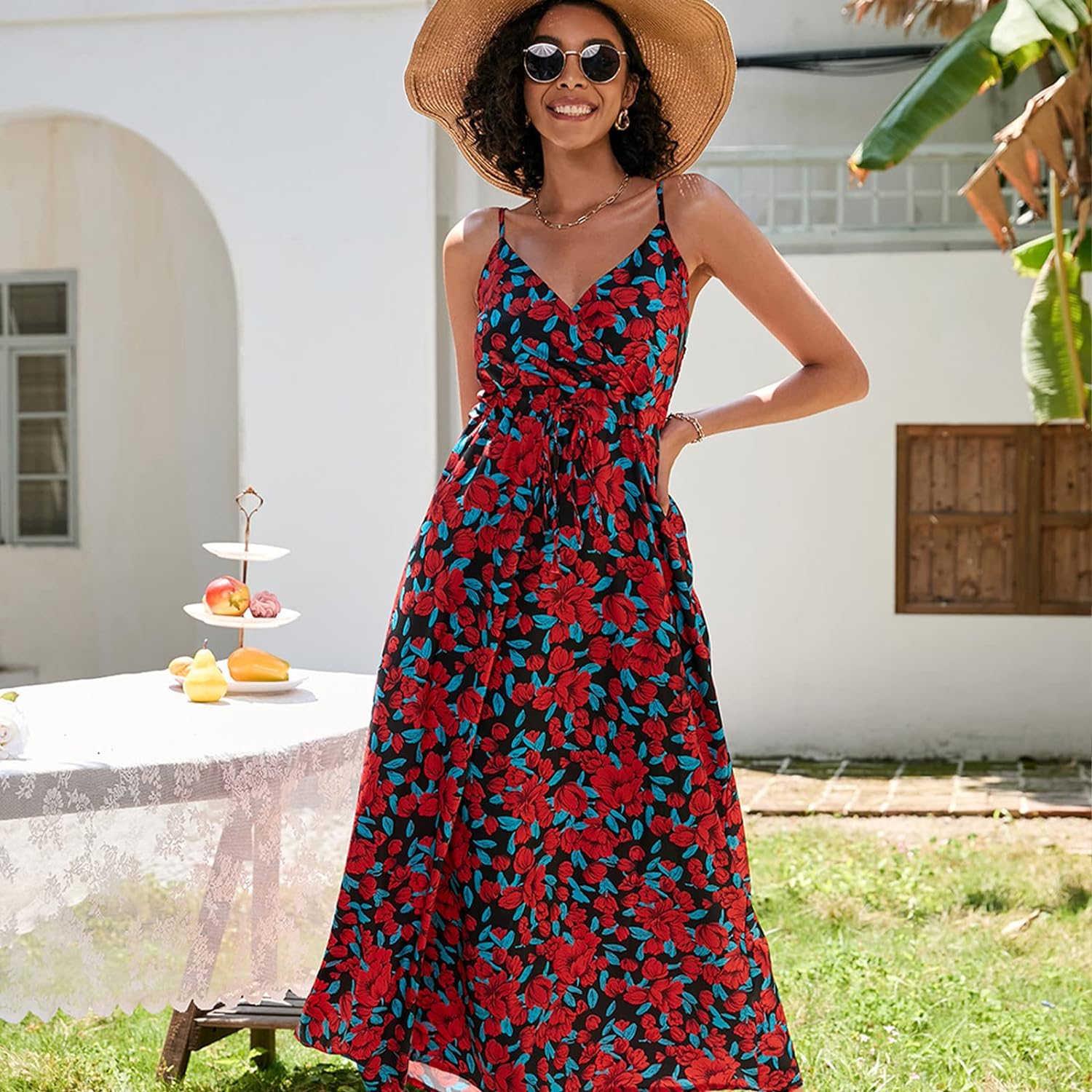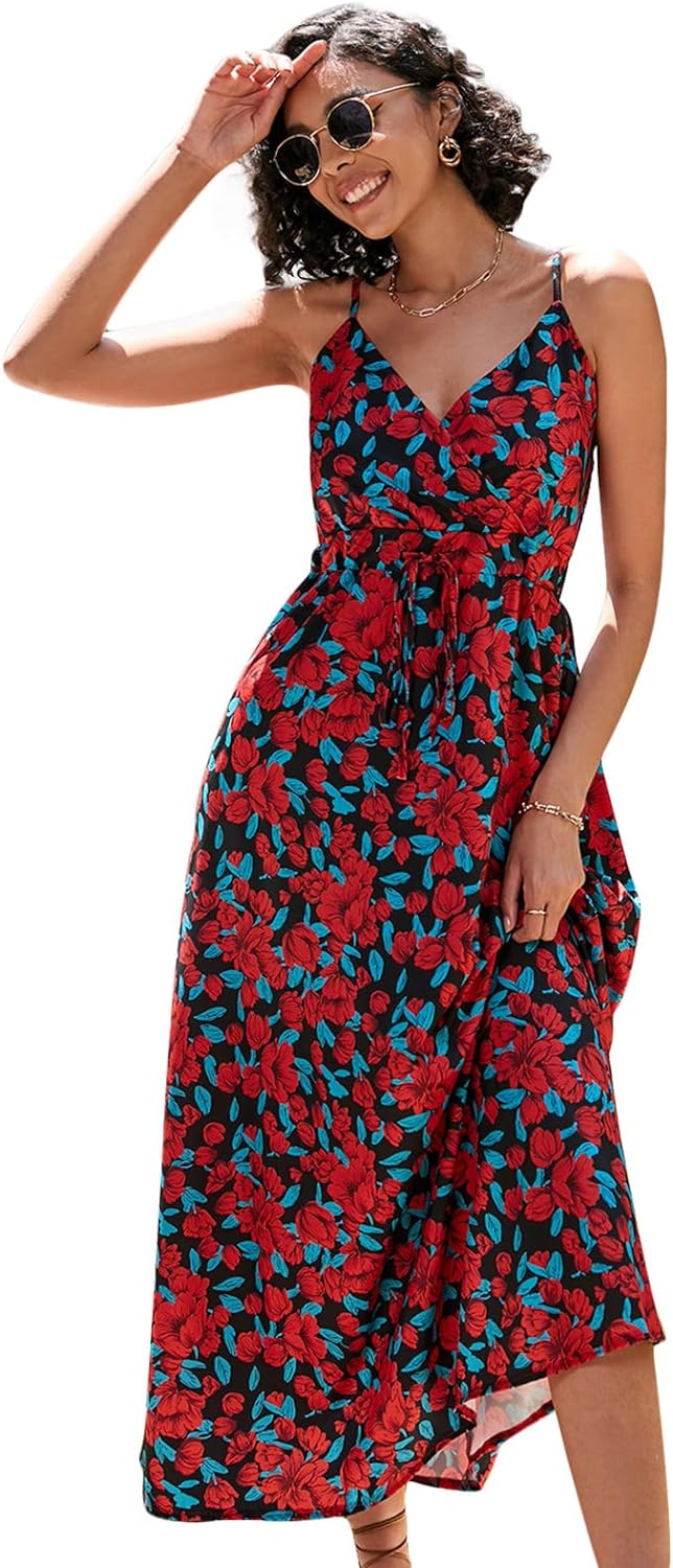 Summer Dresses for Women 2023 Sexy Short Sleeve V Neck High Waist Beach Sun Dress Boho Floral Flowy Casual Wrap Maxi for Ladies Spring Wedding