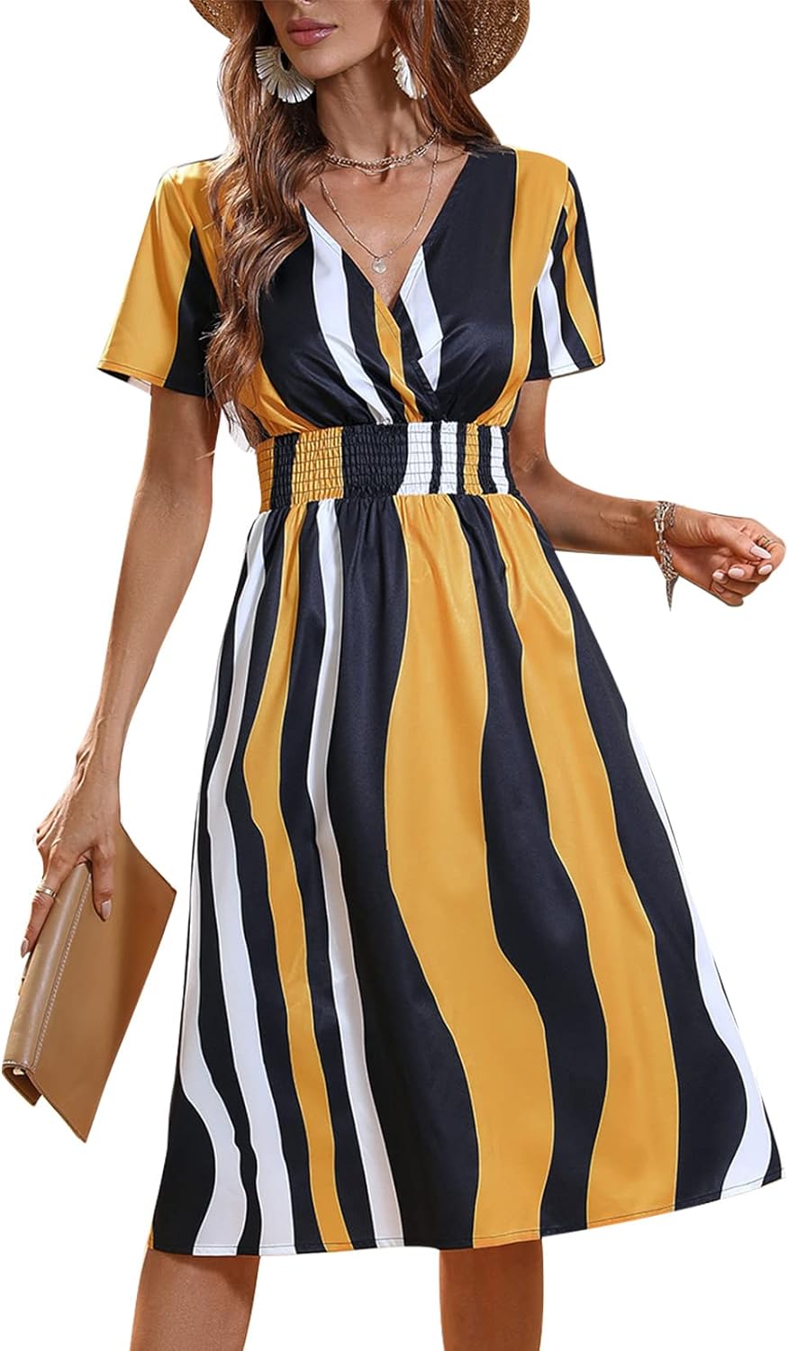 Summer Dresses for Women 2023 Sexy Short Sleeve V Neck High Waist Beac – BUYO