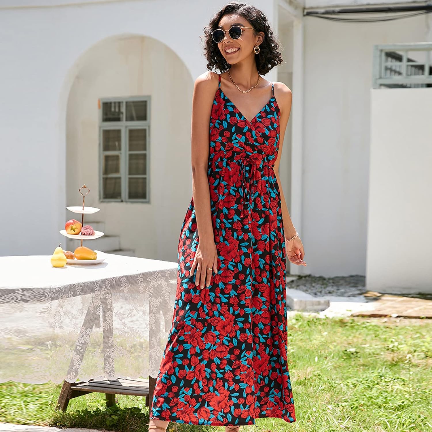 • 👗【STYLISH DESIGN】--- This v-neck dress cut simply and maxi length, with simple wrap waist design, so that the clothes are not monotonous, it is very novel and fashionable. With floral textured and a plain-colored design for a great basic look. This basic cozy dress for teen girl in spring, summer, fall.