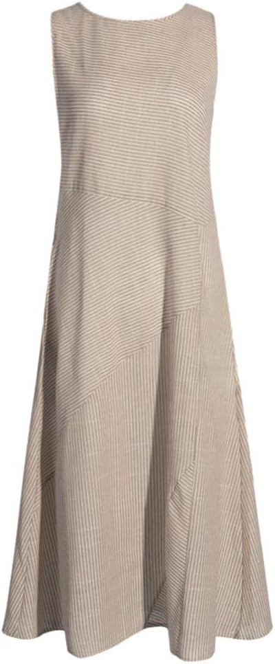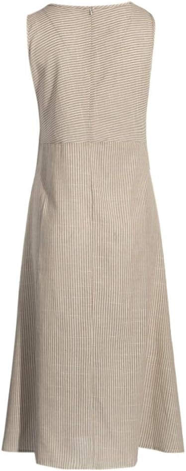 Women Casual Striped Print Sleeveless Dress Crew Neck Linen Pocket Lon – BUYO