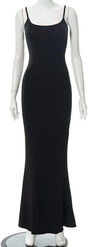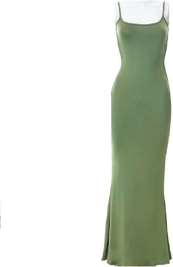 Bodycon Maxi Dress for Women Solid Color Spaghetti Strap Slim Fit Long Dresses Summer Slip Dress