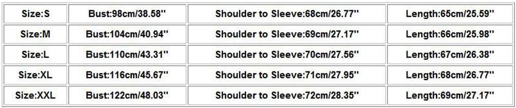 Welcome to my Starryflashing store about Size: Size: S Bust: 98cm/38.58'' Shoulder to Sleeve: 68cm/26.77'' Length: 65cm/25.59'' Size: M Bust: 104cm/40.94'' Shoulder to Sleeve: 69cm/27.17'' Length: 66cm/25.98'' Size: L Bust: 110cm/43.31'' Shoulder to Sleeve: 70cm/27.56'' Length: 67cm/26.38'' Size: XL Bust: 116cm/45.67'' Shoulder to Sleeve: 71cm/27.95'' Length: 68cm/26.77'' Size: XXL Bust: 122cm/48.03'' Shoulder to Sleeve: 72cm/28.35'' Length: 69cm/27.17'' Please NOTE: 1. Please ignore the Amazon Size Chart, Please refer to the size description above. 2. Please allow 1-2cm measuring deviation due to manual measurement.