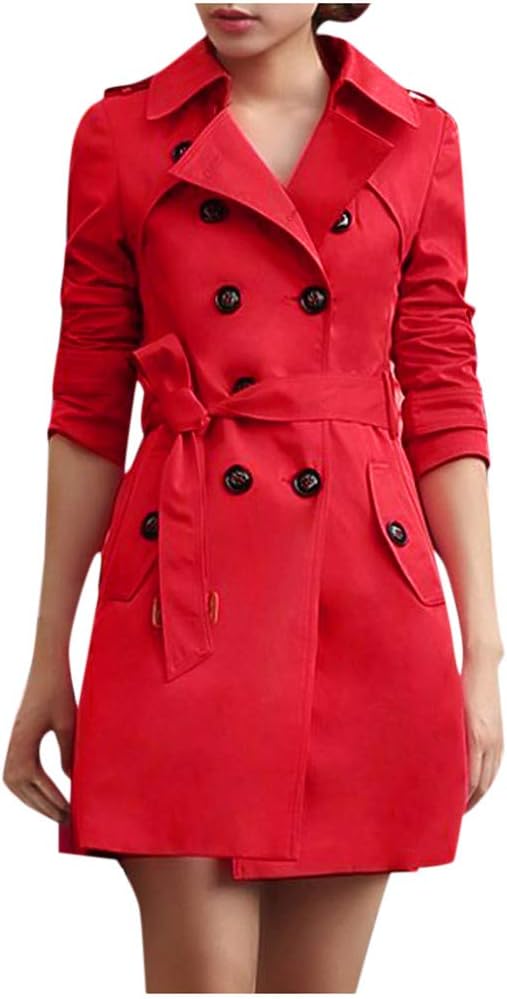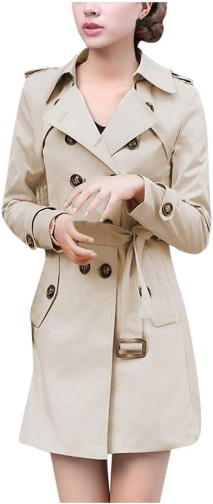 Trench Coats for Women Fankle Sale Double Breasted Turn-Down Collar Windbreaker Lapel Tailoring Overcoat with Belt
