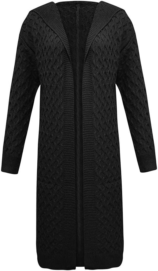 Women Hoodies Sweater Coat, Ladies Solid Long Sleeve Winter Warm Knitted Cardigan Outwear, 1859, L, Black