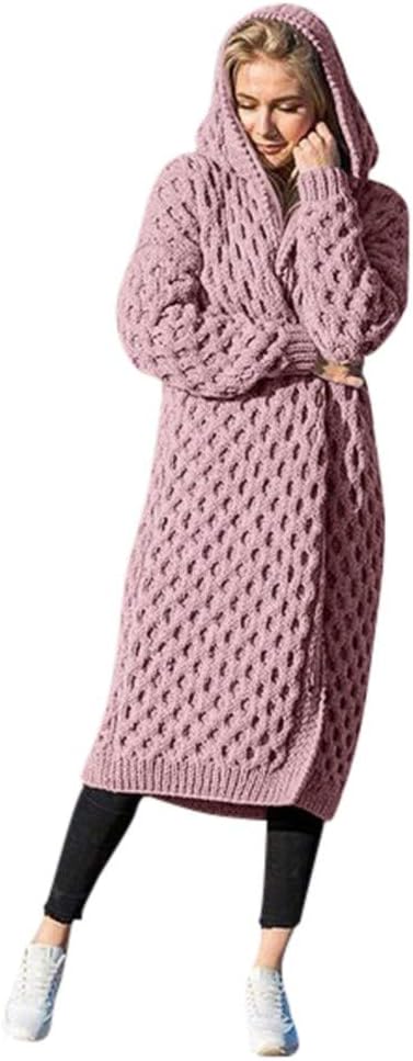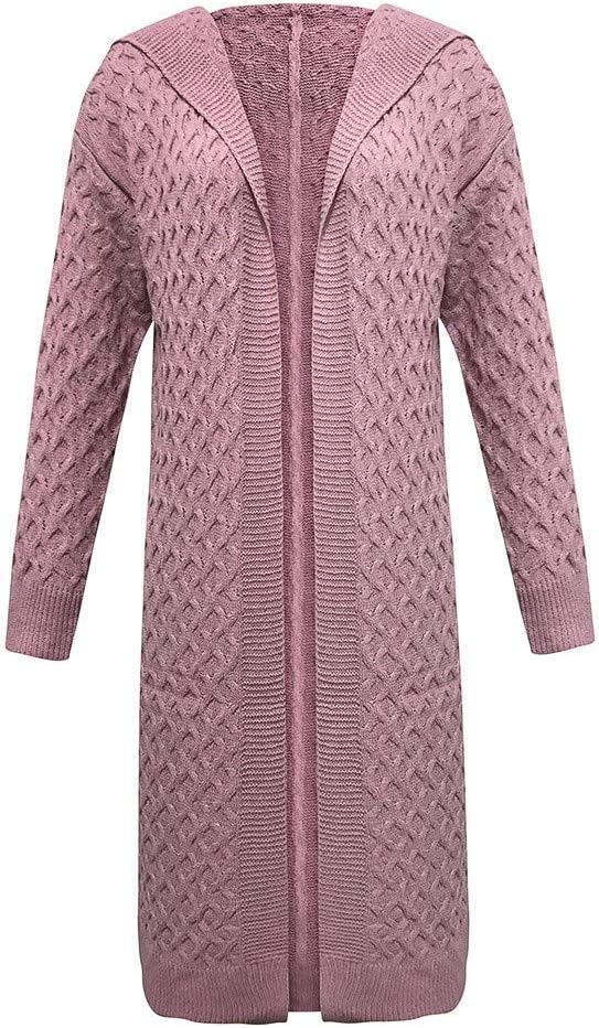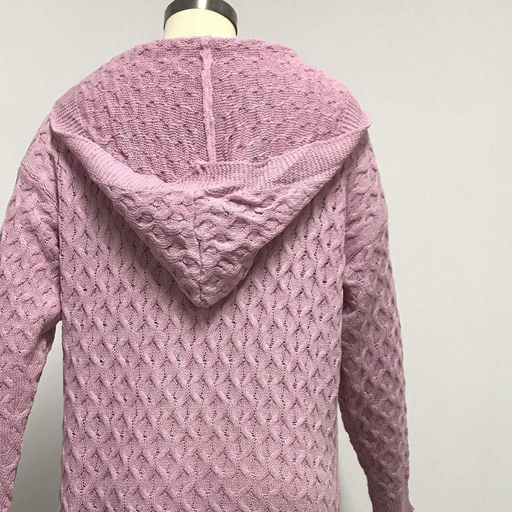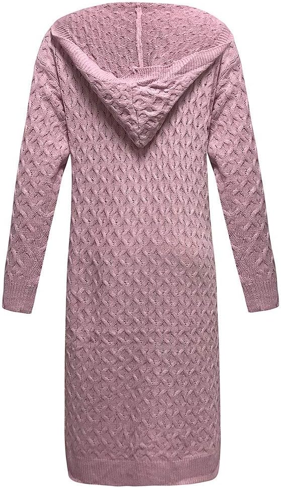 Women Hoodies Sweater Coat, Ladies Solid Long Sleeve Winter Warm Knitted Cardigan Outwear, Pink - M