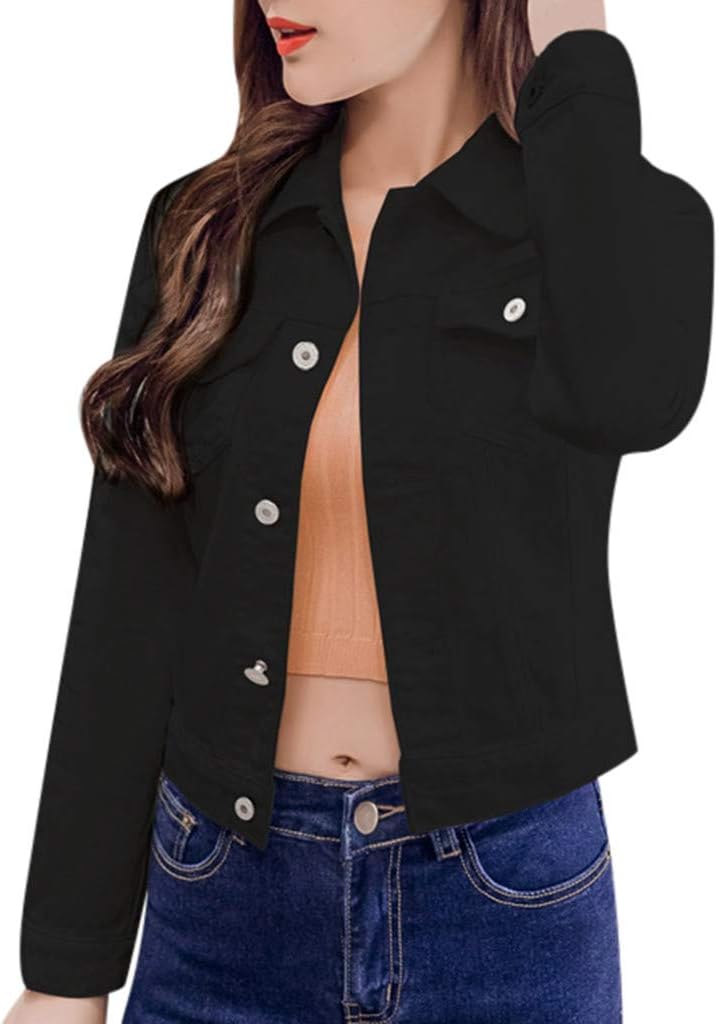 Women Sweatshirt Coat, Ladies Solid Long Sleeve Casual Denim Buttons Blazer Jeans Jacket Cardigan Coat, 1859 - M - Black
