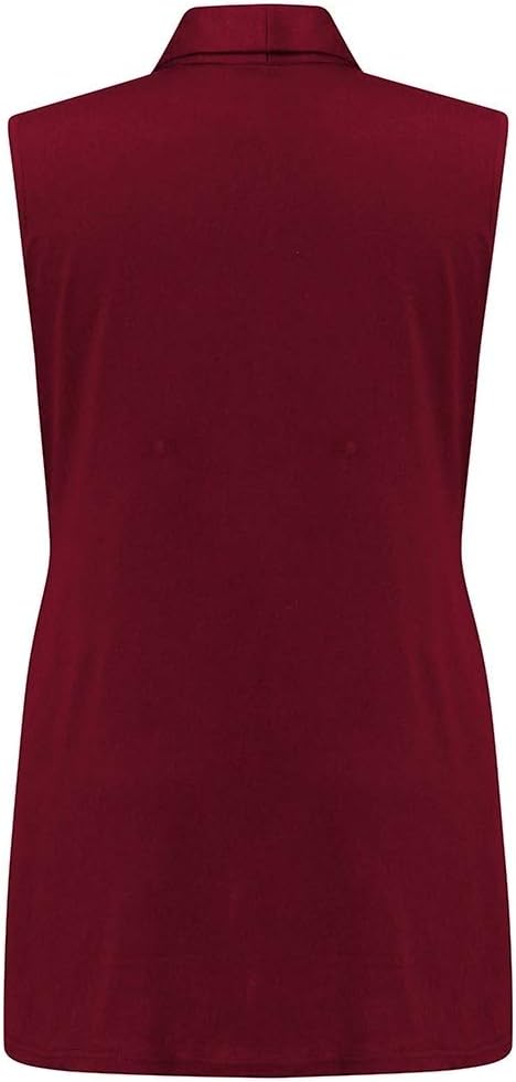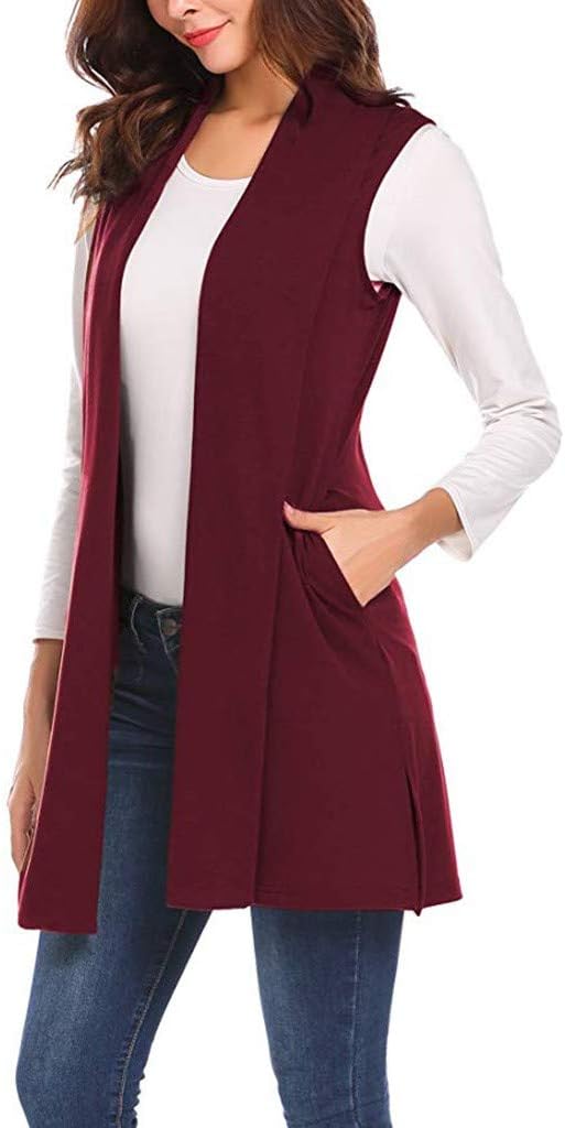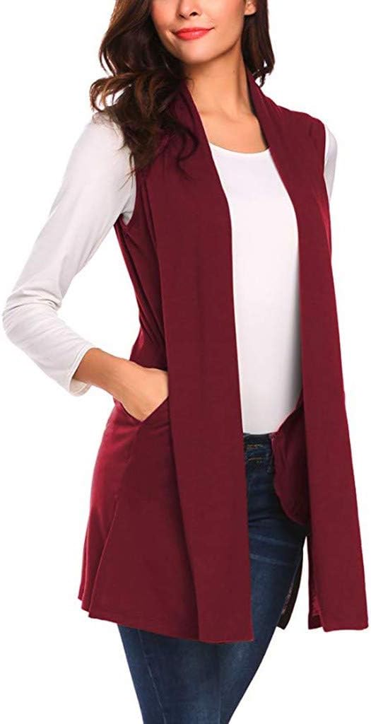 Women Vest Long Coat, Ladies Solid Sleeveless Lightweight Open Front Cardigan Tank Tops Jacket Coat, Red - XL