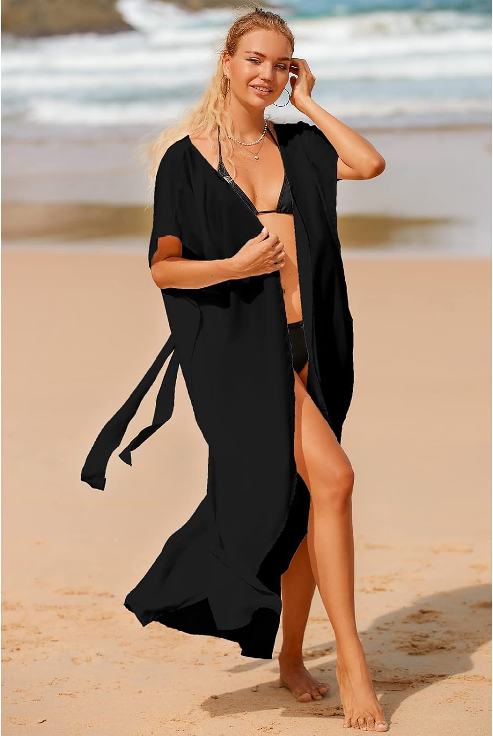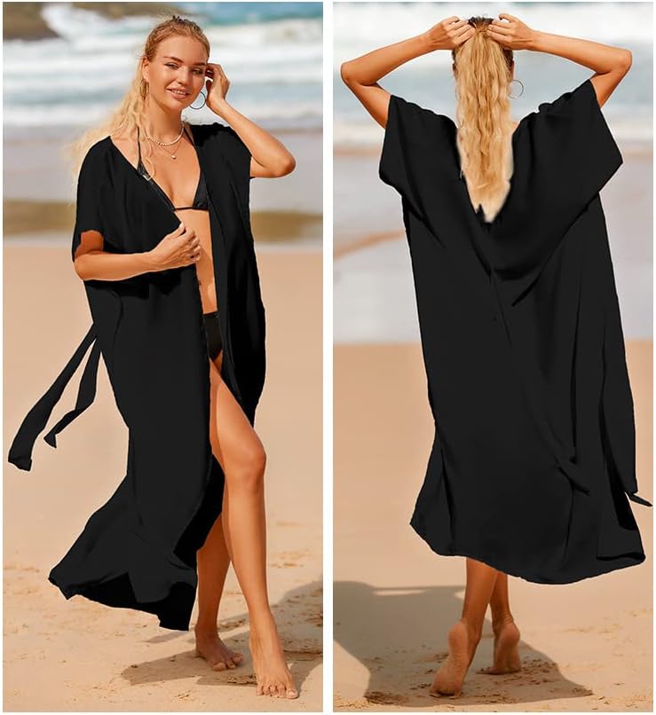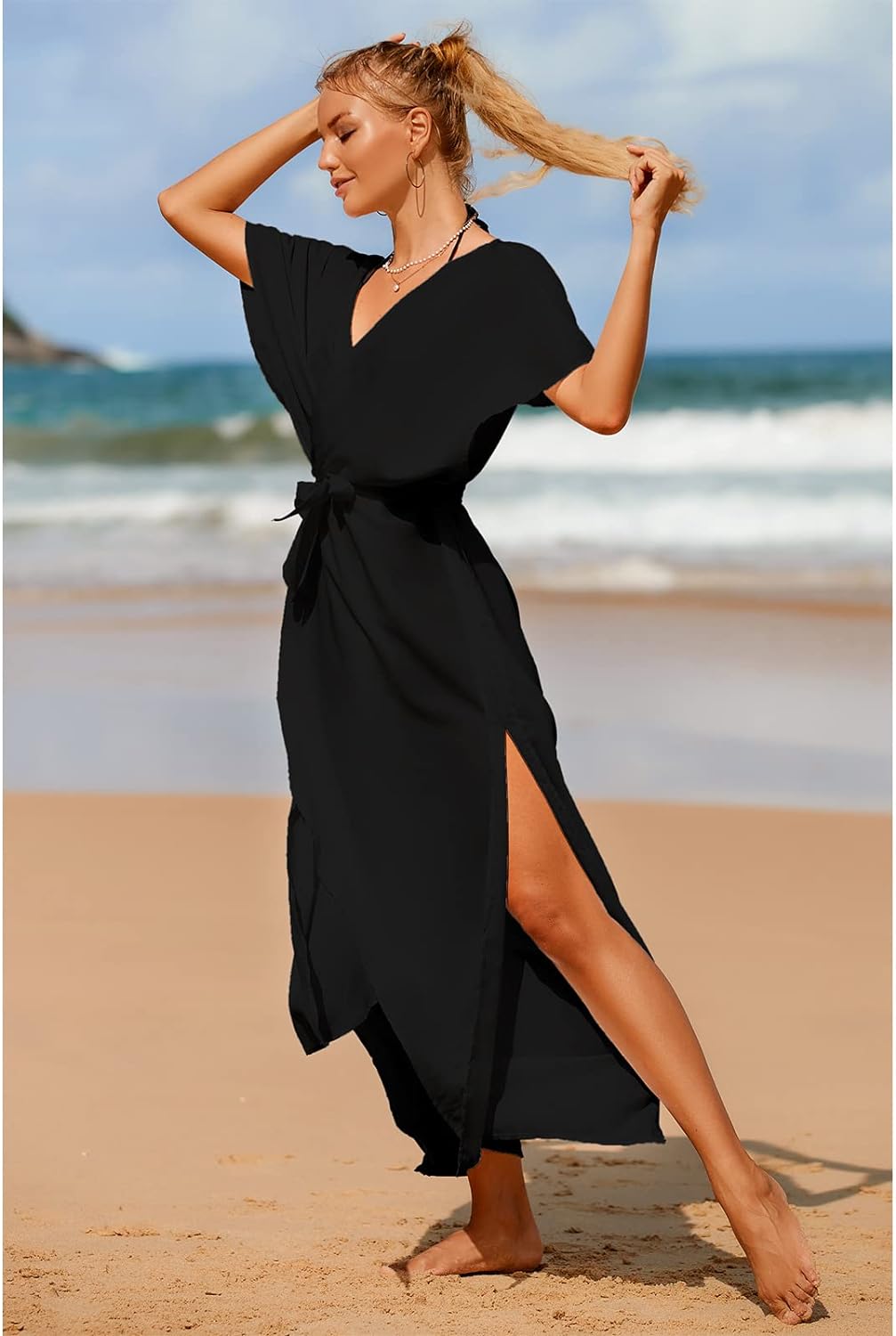 Womens Beach Swimsuit Cover Ups Black and White Bikini Swimwear Beach Cover Up Maxi Dress Shirt