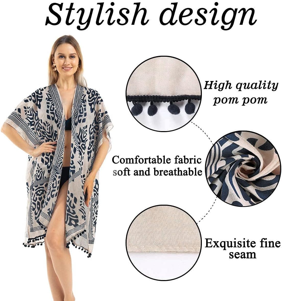 - TURN HEADS ON THE BEACH with the latest trend in ladies kimono cover ups! Wear it as your bikini coverup to complement your swimwear elegance and protect your skin from harmful UV radiation that speeds up ageing. Stay protected from the sun while taking your elegant looks to a whole new level with an eye-catching, luxurious beach outfit for women!