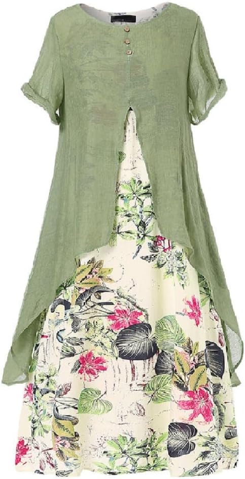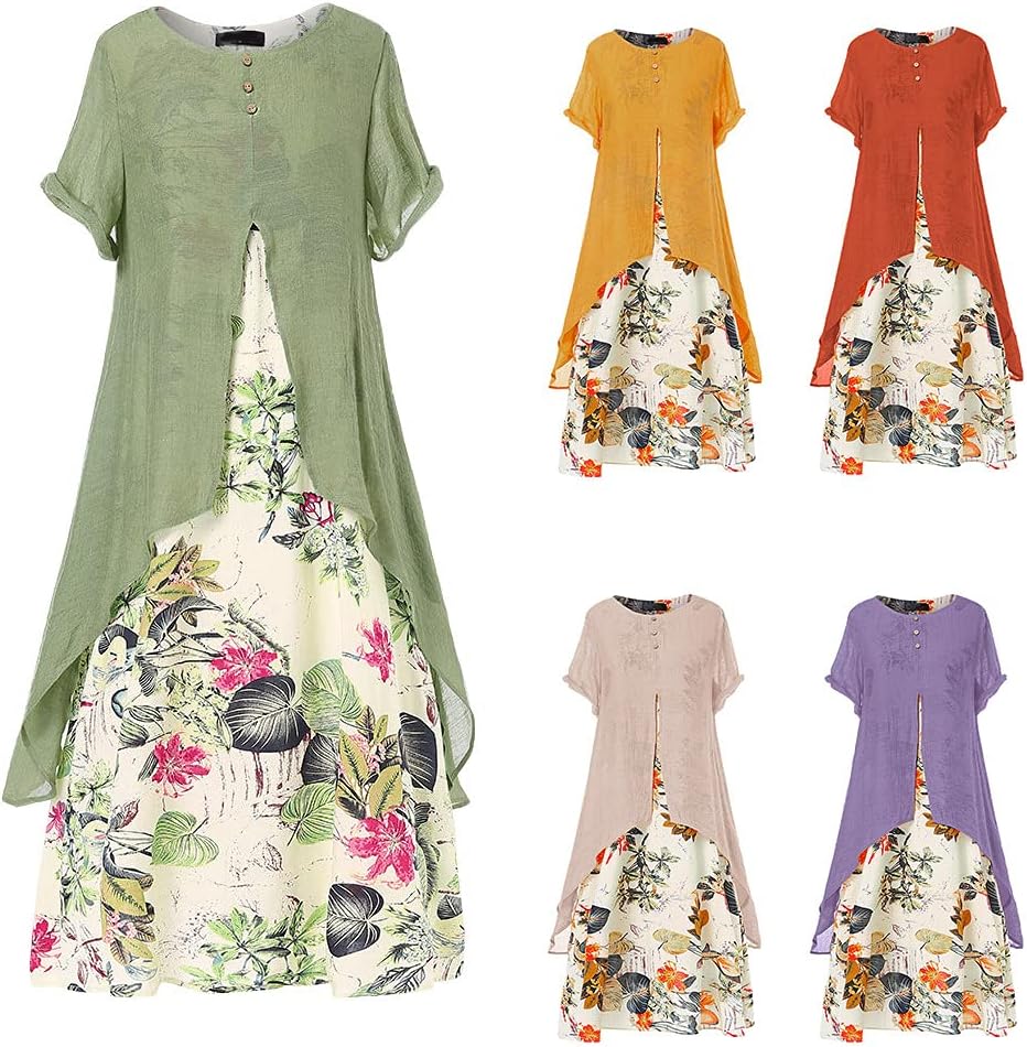 Beach Women's Summer Dresses Casual Maxi Dress Floral Print Flowy Irregular Hem Sleeveless Dress High-Grade Cotton and Linen Floral Long Skirt