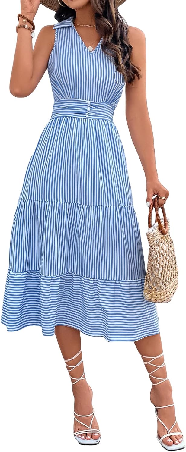 - Features: Ruffle detail, sleeveless, high waist, v neck, cute and casual